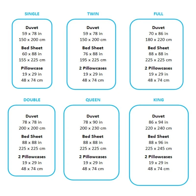 👑 International duvet size : Single, Twin, Full, Double, Queen & King