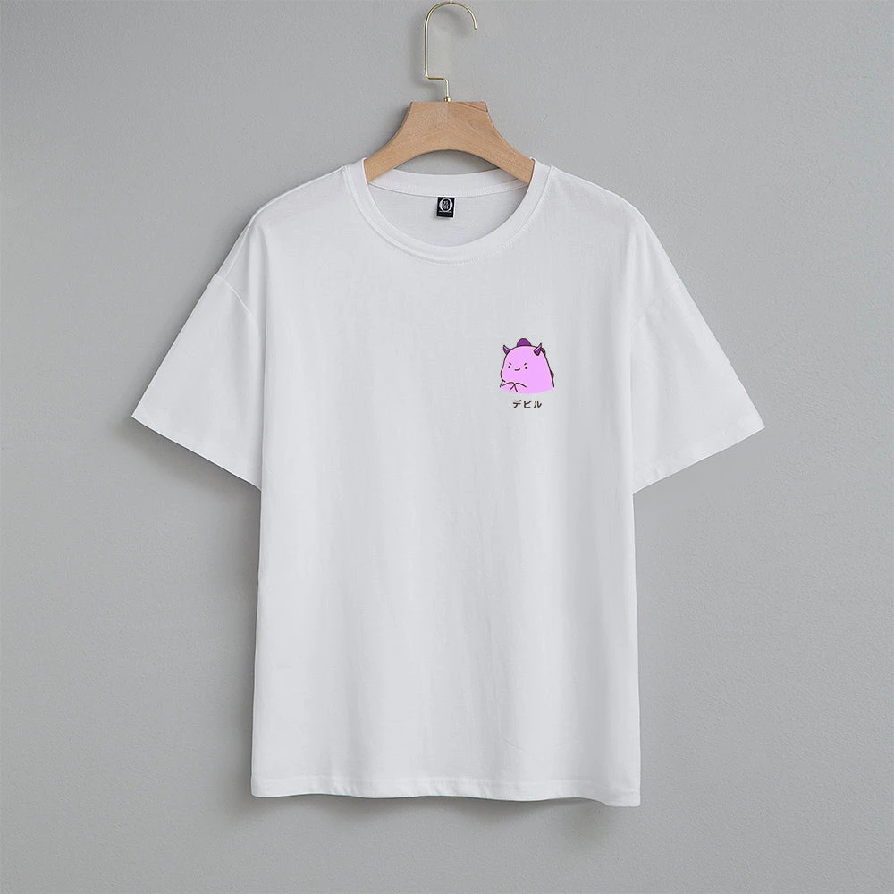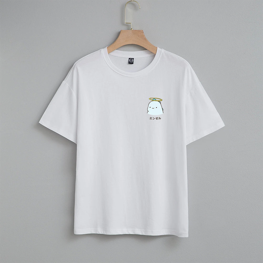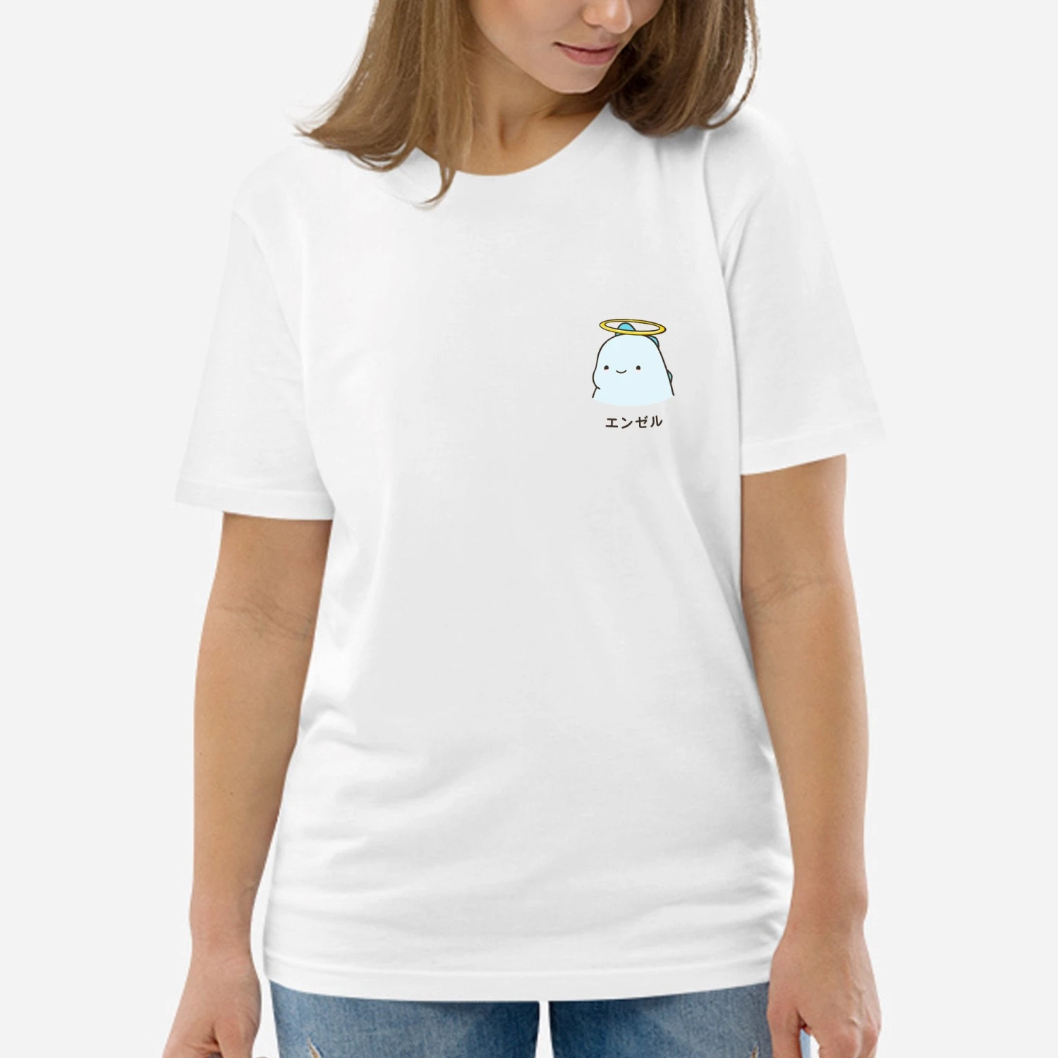 These cute Kawaiies Exclusive Unisex Tees feature Tato our Blue Dinosaur as an Angel or Devil with Japanese text below the illustration. Which emoji do you use most, Angel or Devil?Â