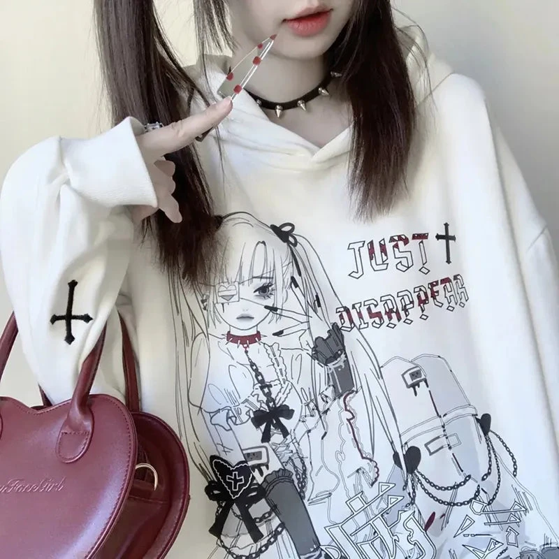 Whether you’re rocking out at a concert, hanging with friends, or chilling at home, this “Just Disappear” Anime Hoodie is your go-to for flaunting your love for all things emo and kawaii.