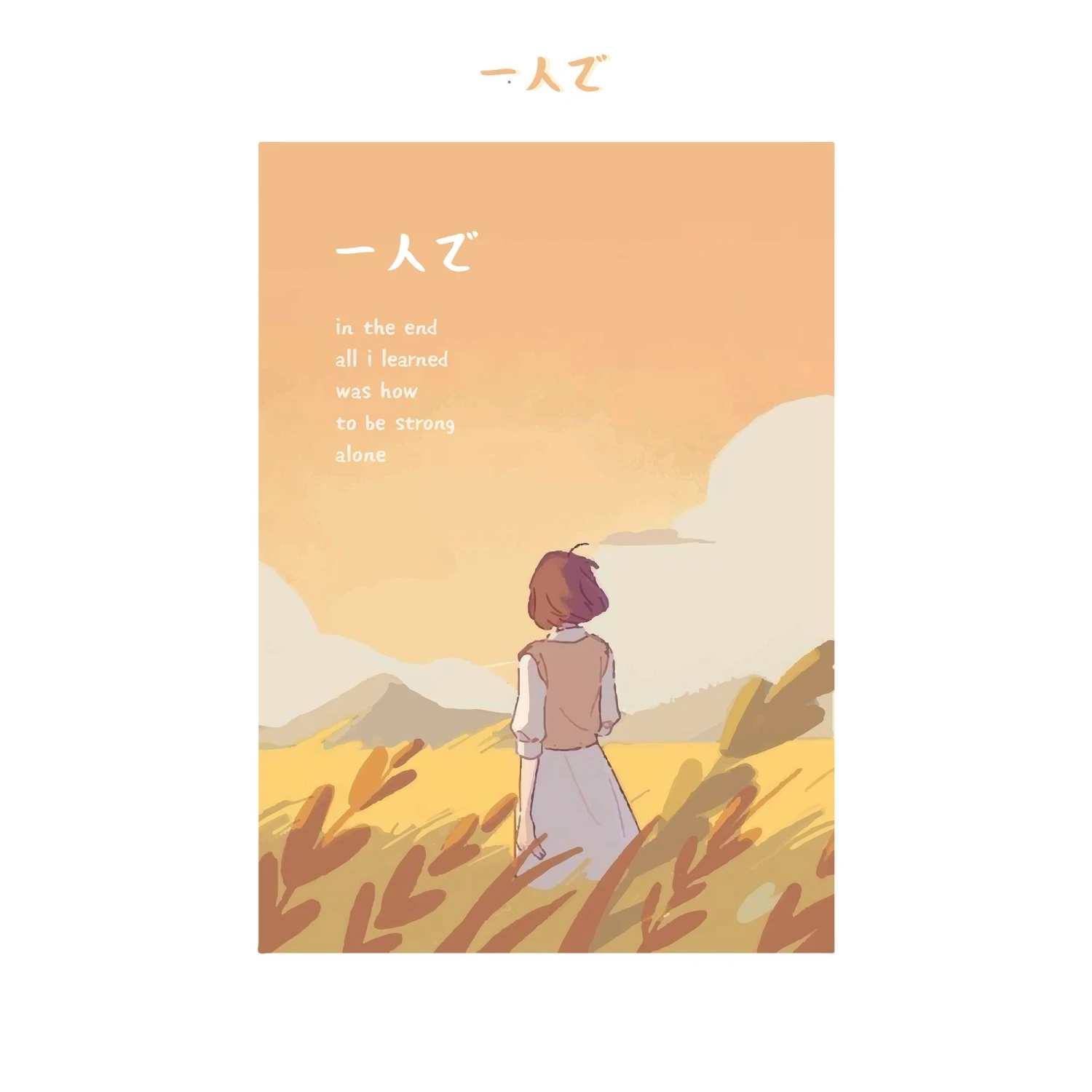 Japanese text translates to ‘alone’ with the quote ‘In the end, all I learned, was how to be strong, alone.’