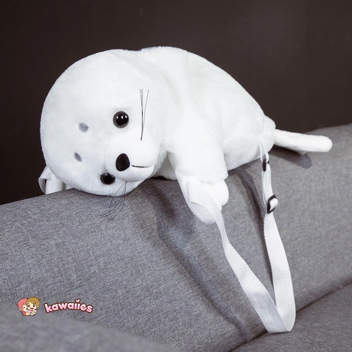 Snowball Baby Seal Plush Backpack come in one size each, measuring about 50cm long. The straps are easily adjustable and the zip is easy to open and close. They are perfectly-sized no matter the occasion, and sure to become a much-loved companion for all ages.