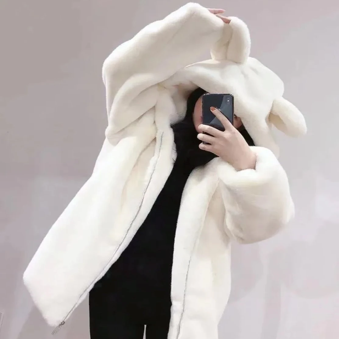 Wrapped in irresistibly soft faux fur, the hooded coat features an endearing bear design that adds a touch of whimsy to your winter wardrobe. Whether you’re strolling through the city or enjoying a winter wonderland, you’ll be the centre of attention in this charming piece.