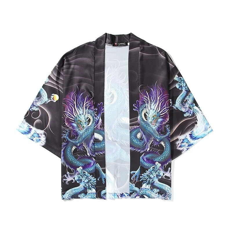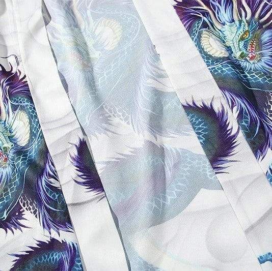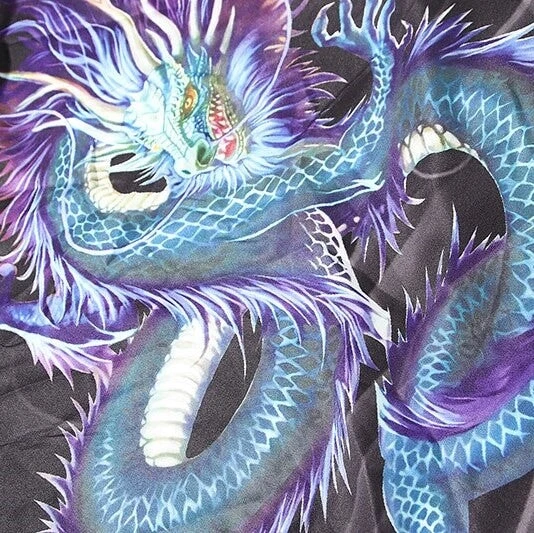 This kimono features a majestic dragon design in vibrant blue, symbolizing strength, courage and wisdom. The fabric is soft and comfortable, yet durable and resistant to wrinkles.