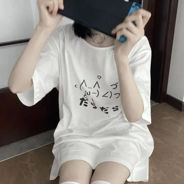 Then this super cute tee is a must-have addition to your everyday essentials featuring a cat made from symbols and chubby Japanese text. With a loose fit, this high-quality tee is the perfect way to add a kawaii vibe to your fit. Pair it with your favorite black skirt, thigh-high leggings and boots for the ultimate kawaii outfit. Wear out with your friends or as a stay-at-home tee.