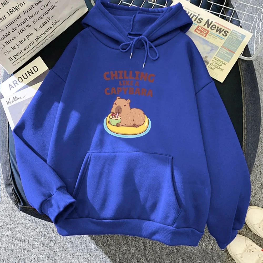 Step into the spotlight with a touch of style and revel in the delightful warmth provided by this unisex hoodie featuring a cute capybara chilling with a refreshing drink.