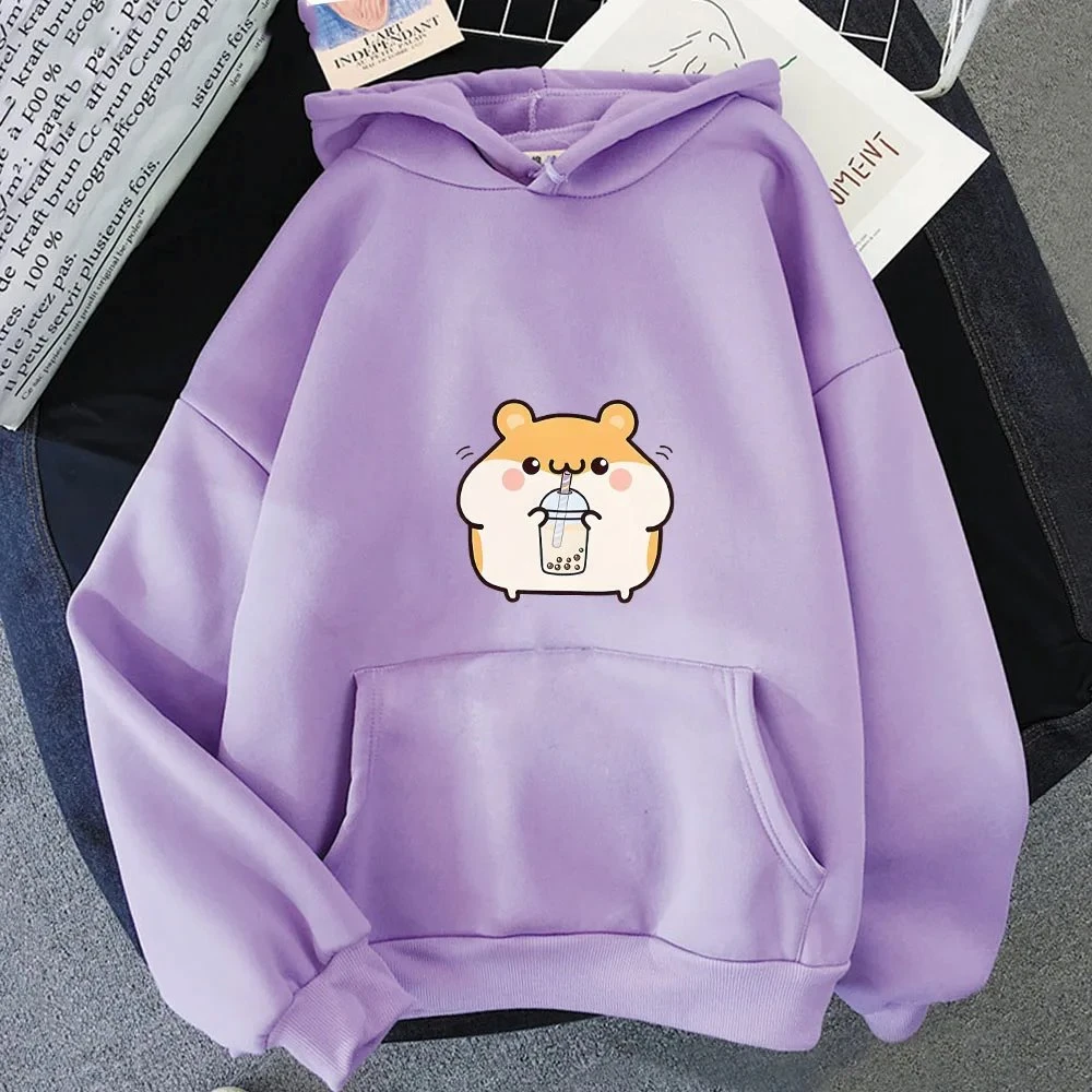 Know someone who loves hamsters? Then send this hoodie their way! Featuring a cute illustration of a ginger hamster drinking its fav drink – bubble tea printed on the front.