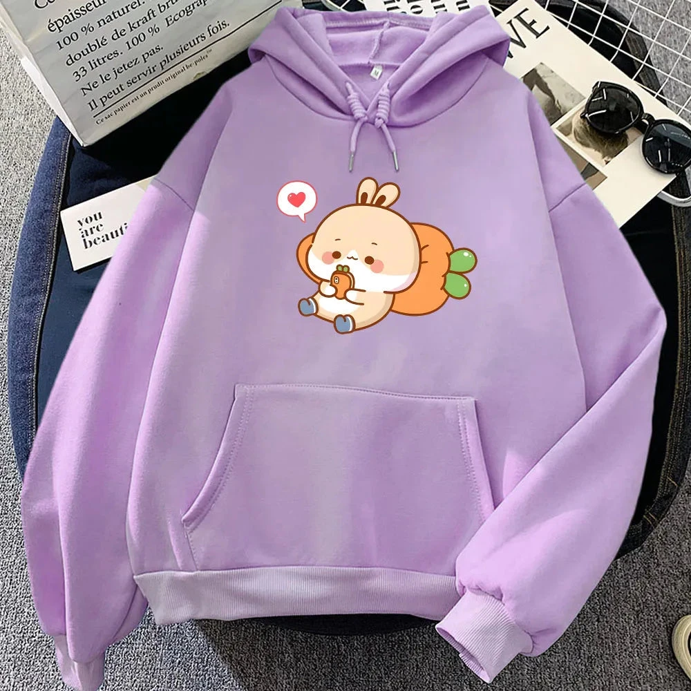 Introducing the ultimate cozy cuteness with this adorable hoodie. It’s like wrapping yourself in a cloud of comfort, with the sweetest design featuring an illustrated bunny chilling on a carrot and texting its bestie.