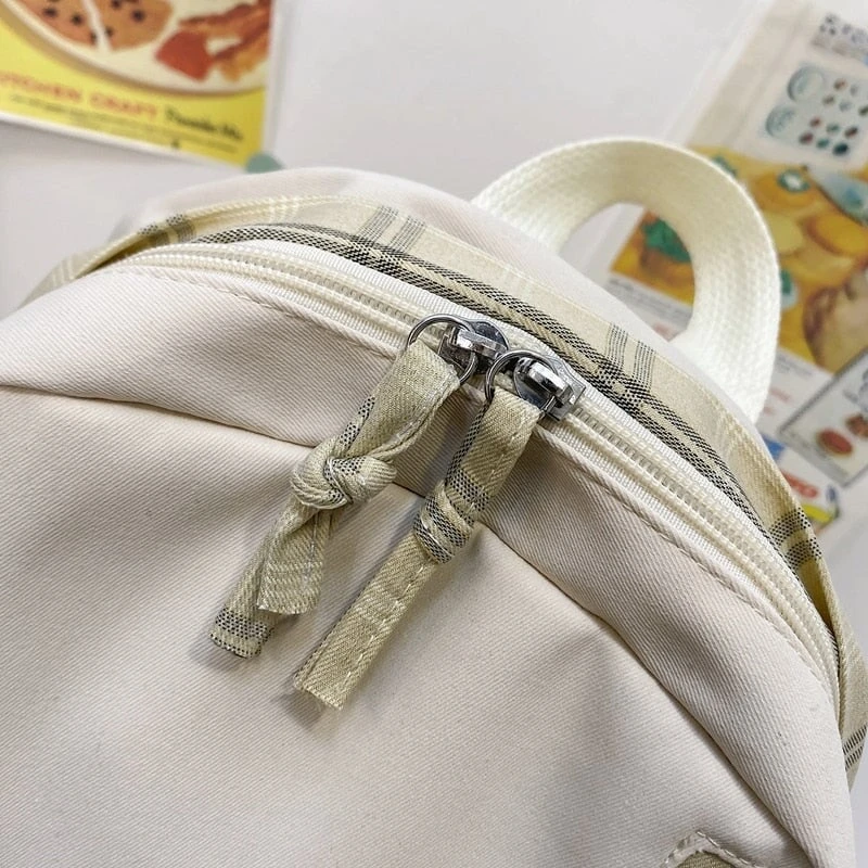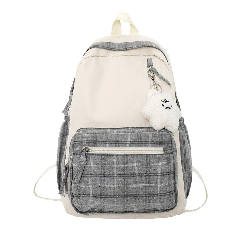 This functional backpack features a plaid, two-tone pastel pattern, along with several pockets both inside and outside, allowing you to keep your bottle away from your laptop, tablet, notes, books and more. This bag offers ample internal storage space and is ideal for storing all your essentials.