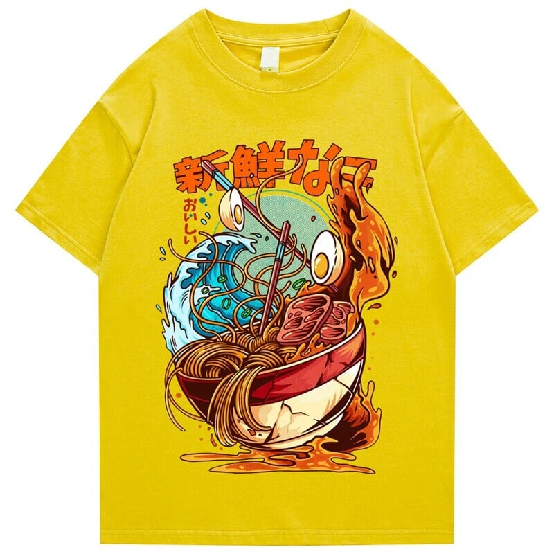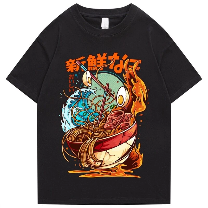 Boasting a Japanese-themed design of a flaming hot ramen bowl with a street-style edge. Crafted from premium cotton, this tee promises a comfortable fit that you can slip into effortlessly.