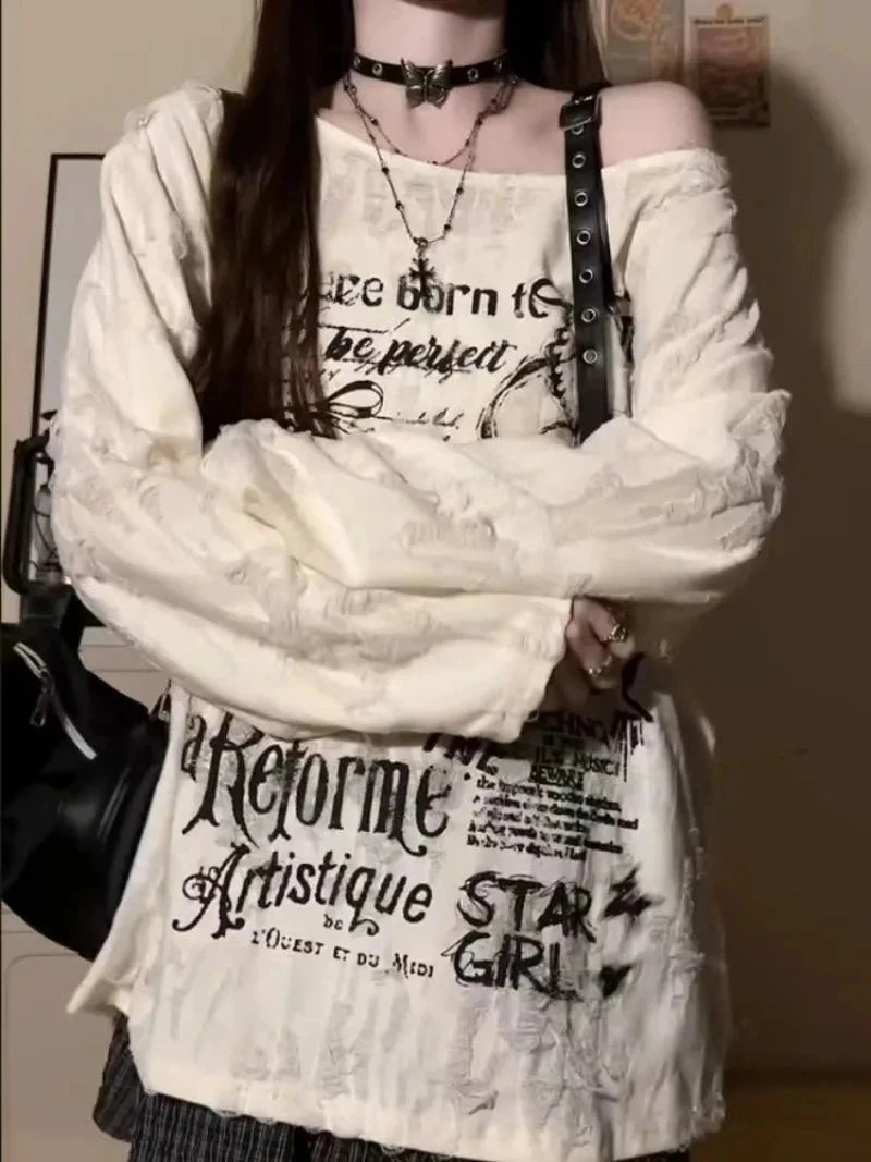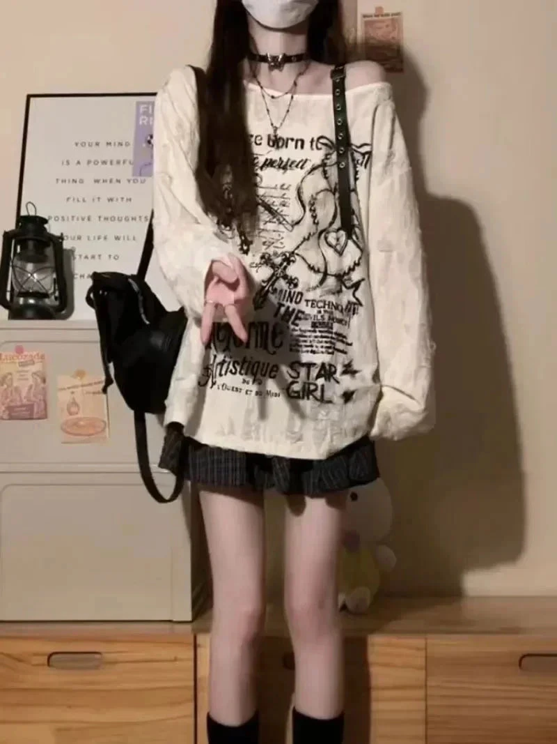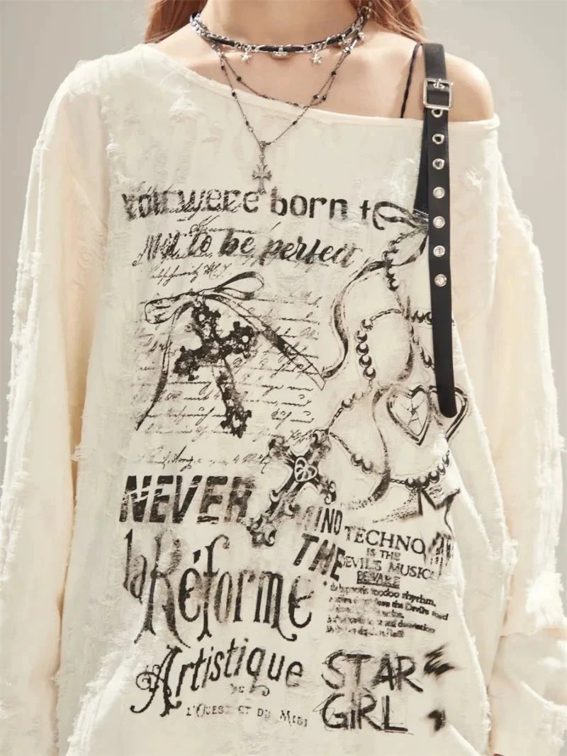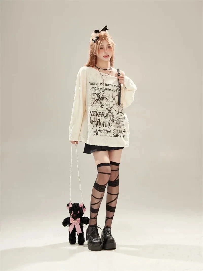 Born to stand out, never to blend in. This Off-Shoulder Graphic long-sleeve is your new weekend top, slouchy, statement-making, and oozing chaotic soft-girl energy.