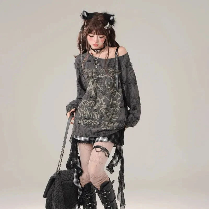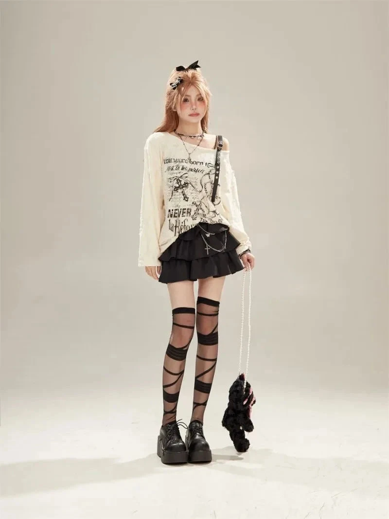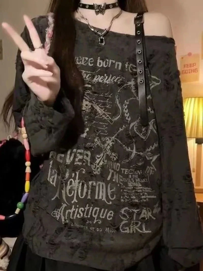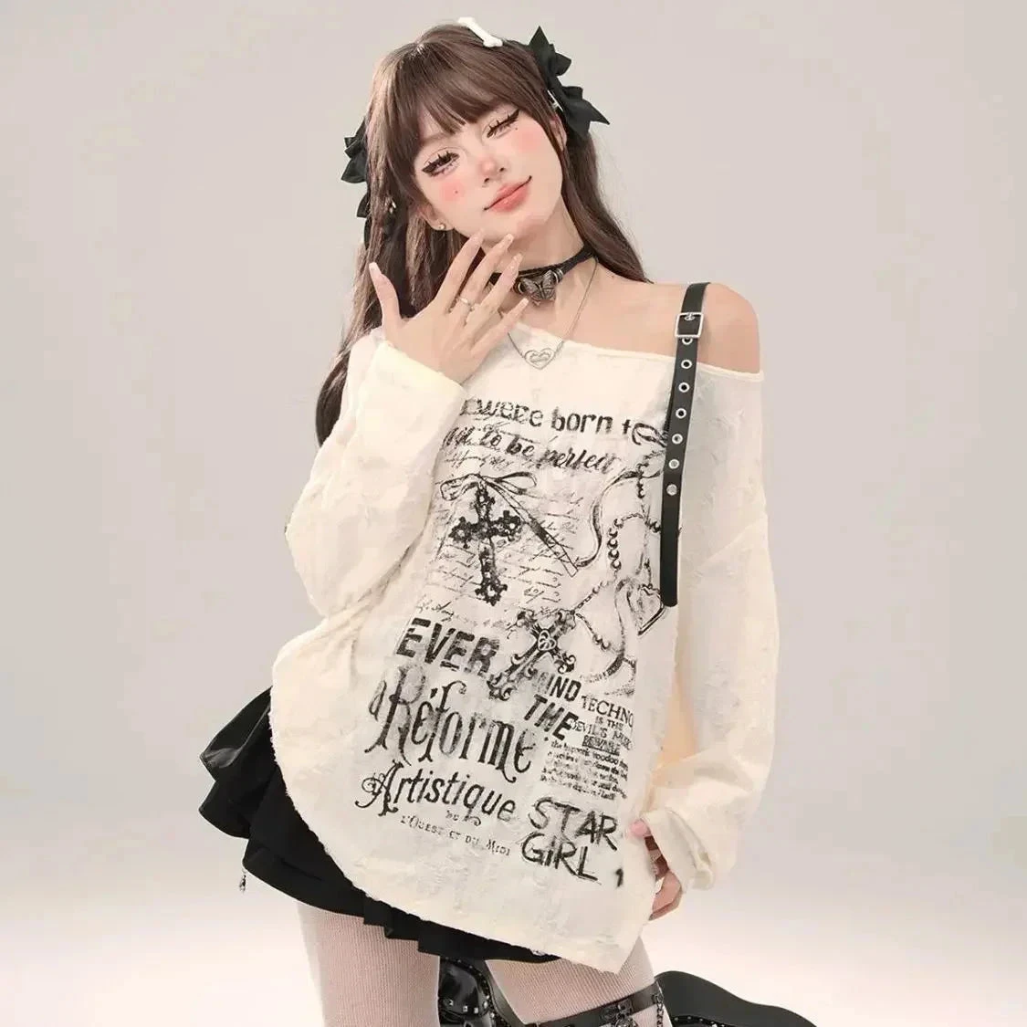 Born to stand out, never to blend in. This Off-Shoulder Graphic long-sleeve is your new weekend top, slouchy, statement-making, and oozing chaotic soft-girl energy.