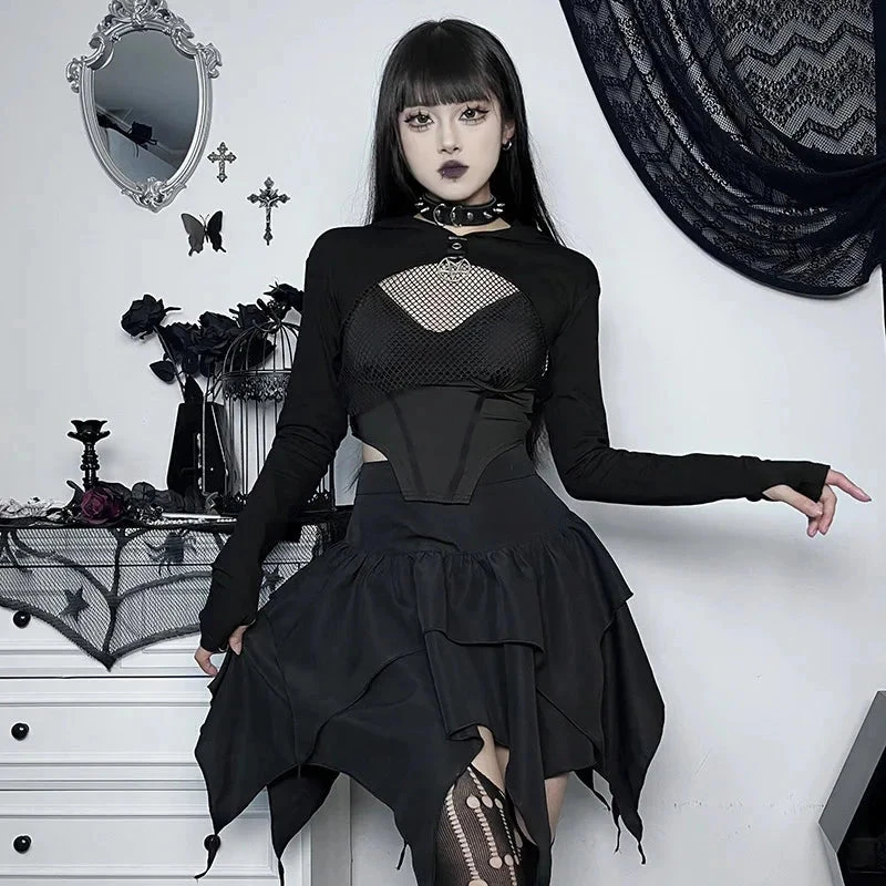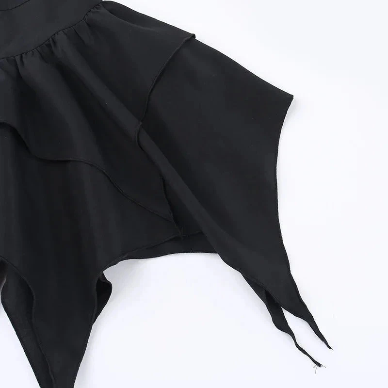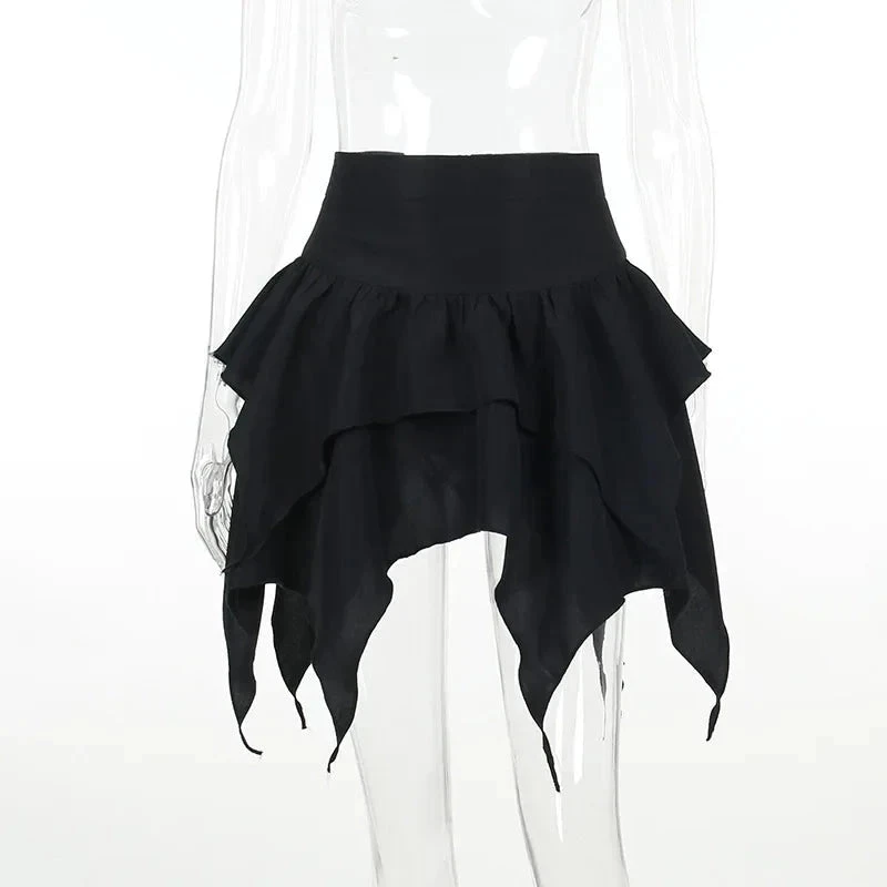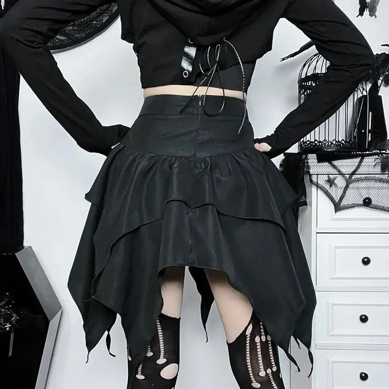 Own your shadows with the Dark Asymmetrical Skirt, a dangerously chic piece designed for those who lead with mystery and move like magic. This layered mini features jagged hems, flowing fabric, and an optional metal ring belt that screams power, rebellion, and elegance in the same breath.