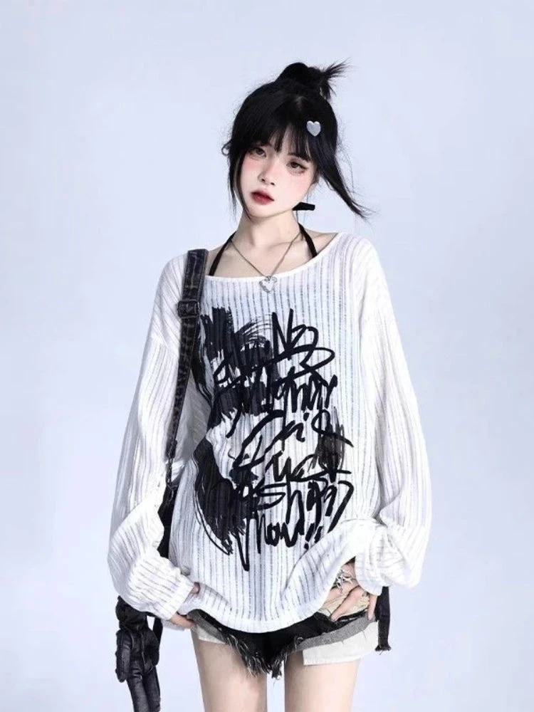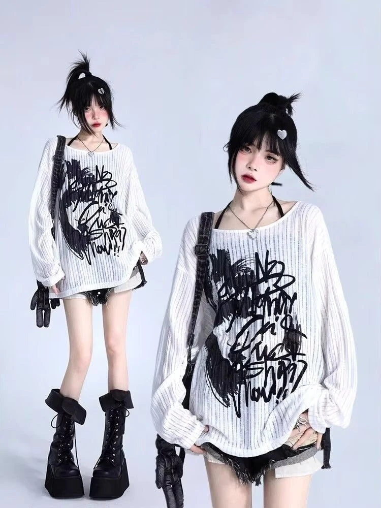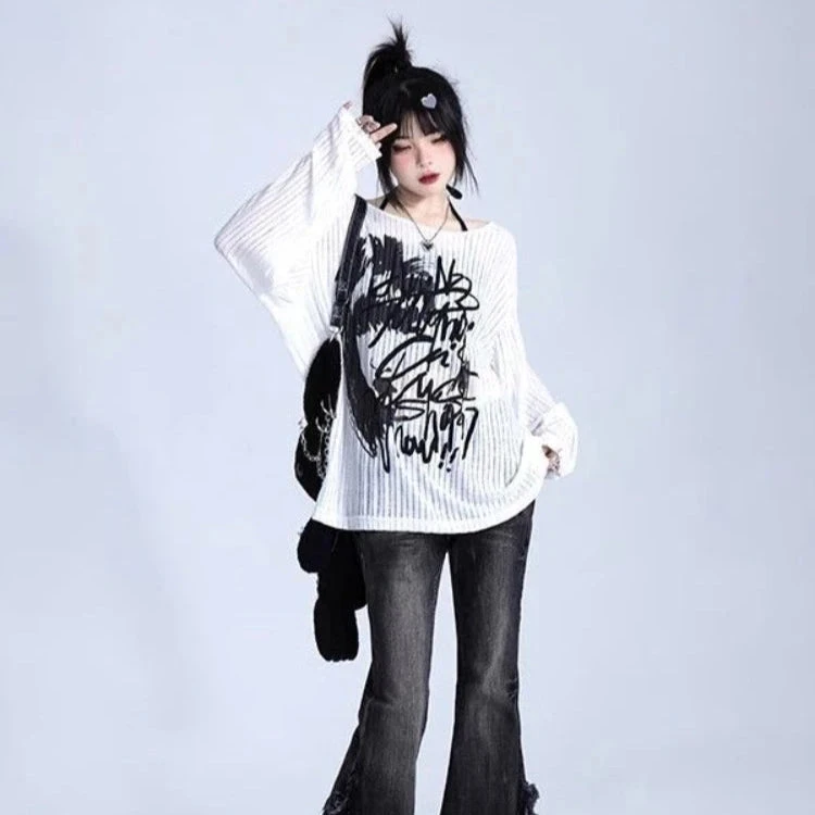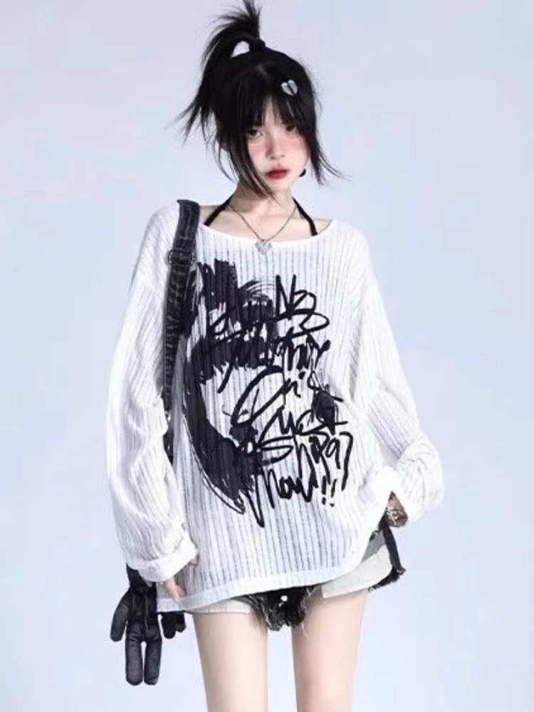 Loud print. Laid-back feel. The Graffiti Mood Oversized Long Sleeve is for the ones who live in their headphones, sketch in the margins, and style themselves like walking art. With a slouchy silhouette, ribbed texture, and chaotic-black graffiti scrawl across the front, this top gives big soft rebellion energy.