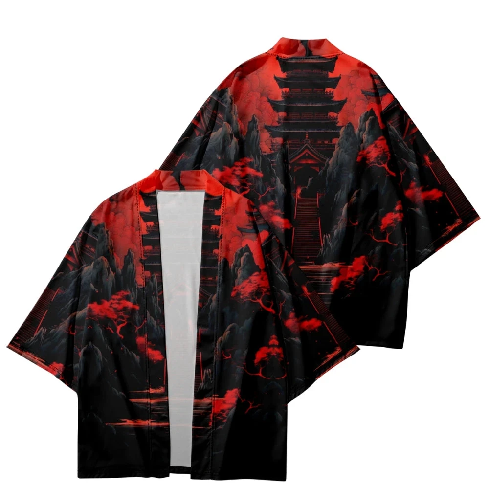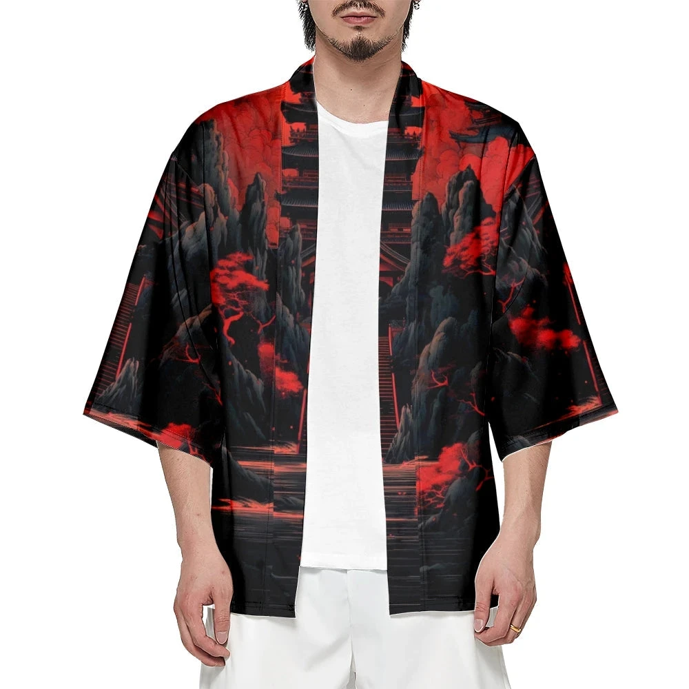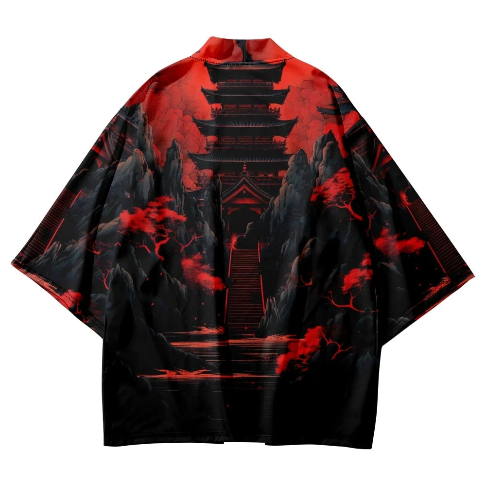 Featuring a gloomy path to a Japanese Pagoda printed on the front and back. This is a dream come true for those who love Japanese culture. Imagine pairing this kimono with a white tee and your favorite bottoms.Â