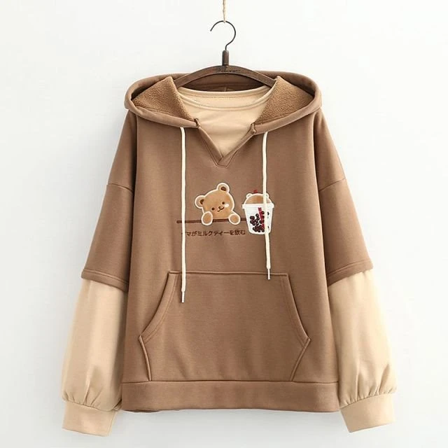 If you are looking for a unique hoodie, our Japanese BBT Hoodies are the answer. These fashionable, yet extremely comfortable hoodies feature huge embroidered brown bears on the front, along with a cute Bubble Tea giving the wearer an interesting experience wherever they go. The hoodies are well made, giving great protection from the cold when you wear them outside.