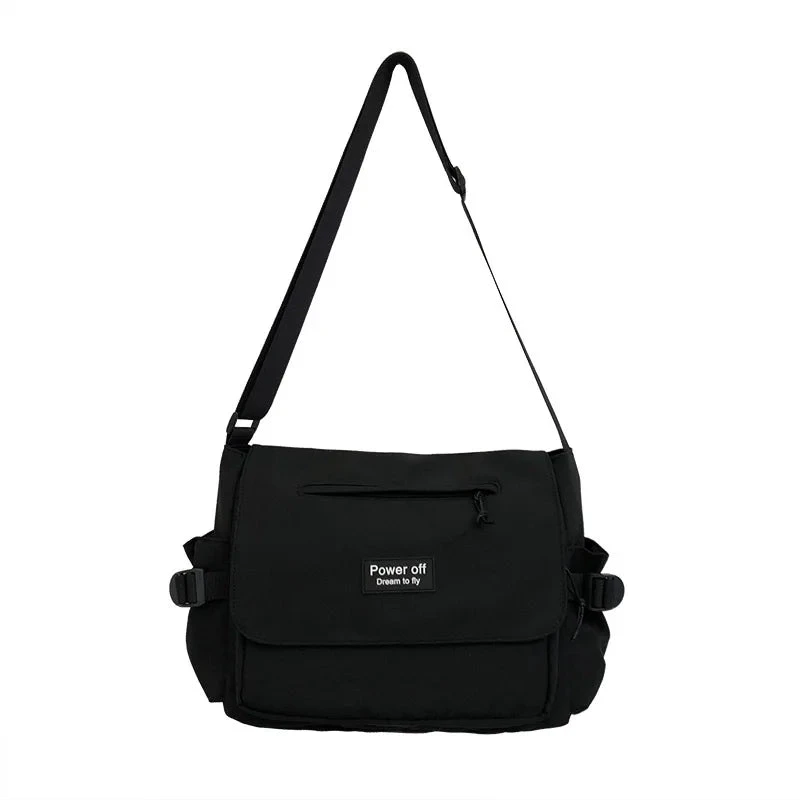 This simplistic but functional crossbody bag features several different large compartments, and many interior and exterior pockets. Wear this bag on your side with a thick black adjustable strap. Made from high-quality waterproof materials with enough space to fit all of your essentials. Choose to have a Soot Ball plush pendant.Â