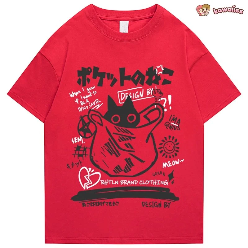 Are you in search of a comfortable tee that never fails to bring a smile to your face when you’re searching for a tee to wear? Look no further than this Cat-themed Tee! This cute top features an adventurous black cat following you around in a tote bag with kanji text and fun illustrations. Made from 100% cotton, these tees offer a soft, breathable, and durable feel. The round neck, short sleeves, and regular fit make it flattering for any body type.
