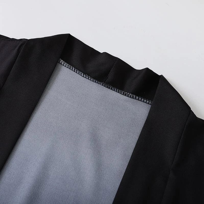 Wear this kimono top at home, the next time you’re out with friends, or even take it to your next vacation! Pair it with black bottoms and a black tee to complete the look.