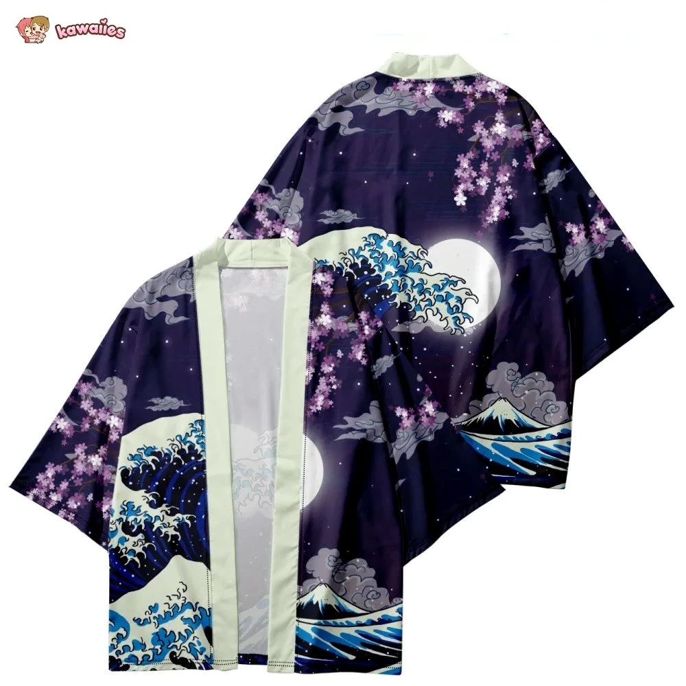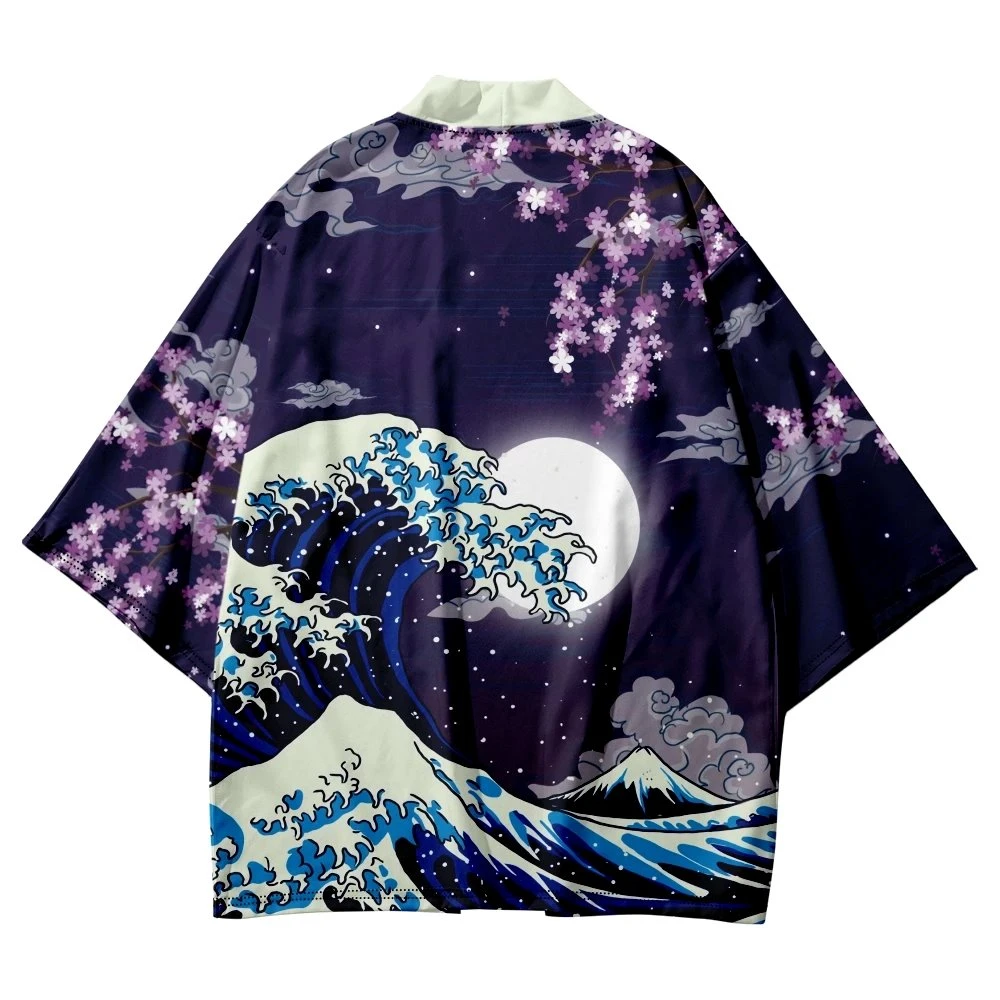 Let the gentle summer breeze wrap around you as you wear this stunning Japanese-themed kimono, featuring the famous Kanagawa Wave to show your love for Japanese culture.