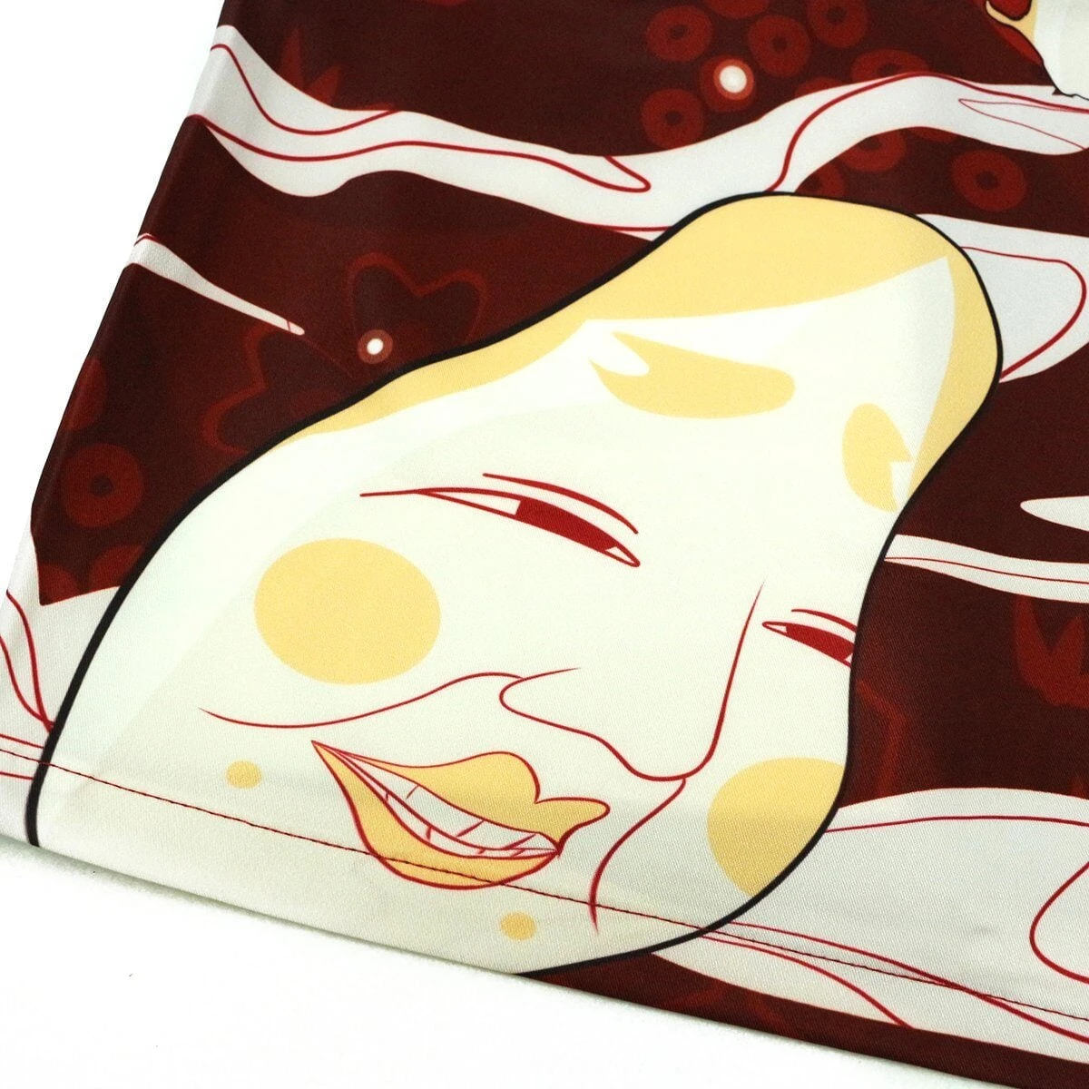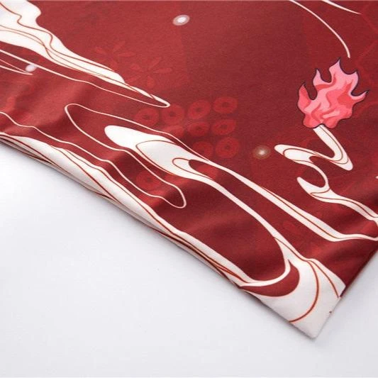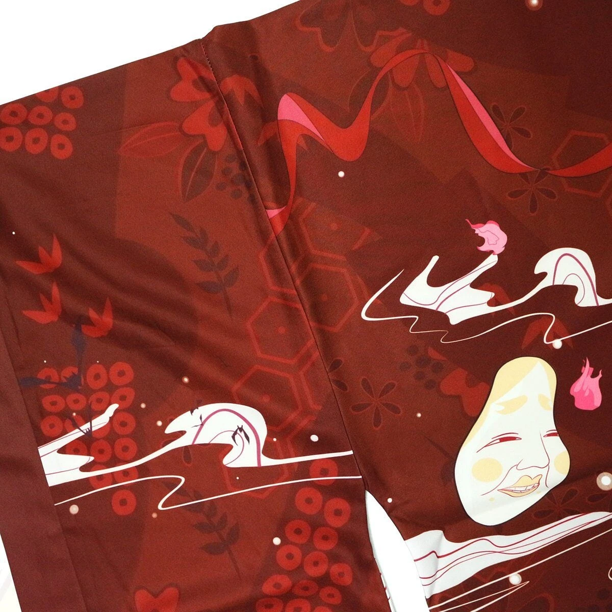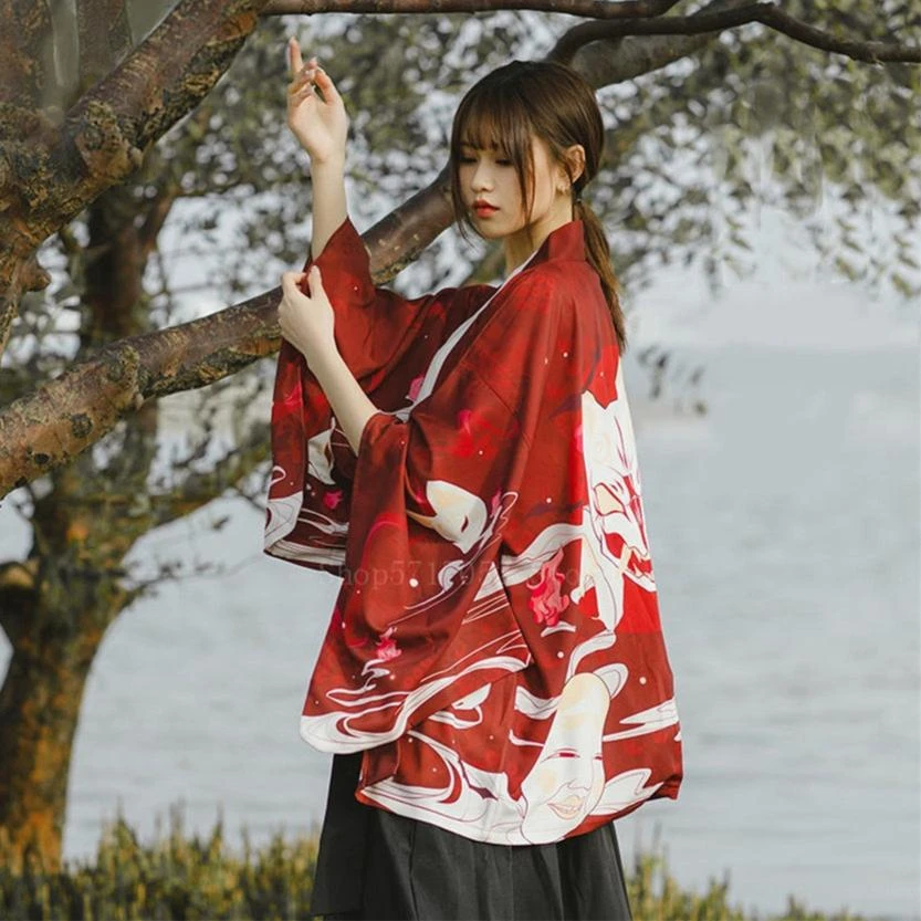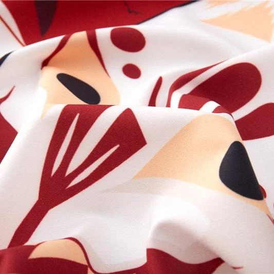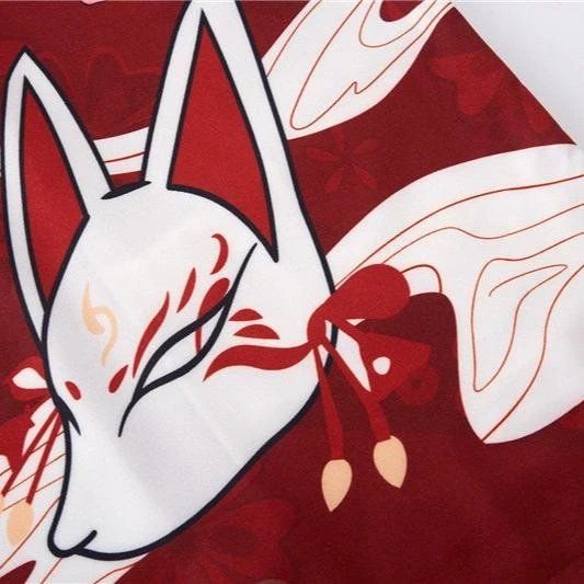 Wrap yourself in an affordable kimono that’s soft on the skin with a hint of Japanese culture. This striking red or navy kimono showcases multiple white samurai cat masks with illustrations across the canvas. Enjoy the classic loose fit that feels light and silky soft, perfect for all-day comfort.