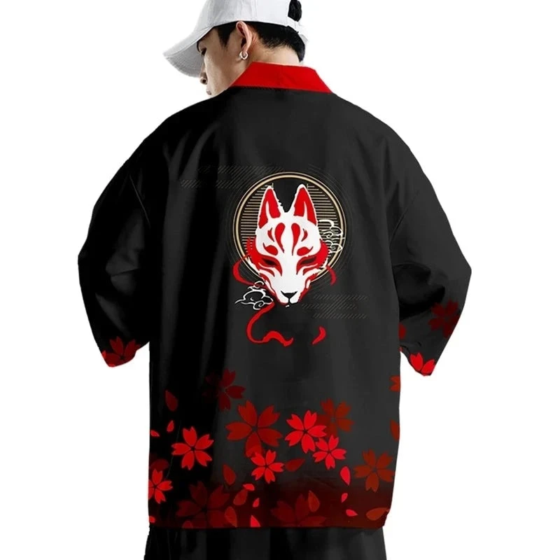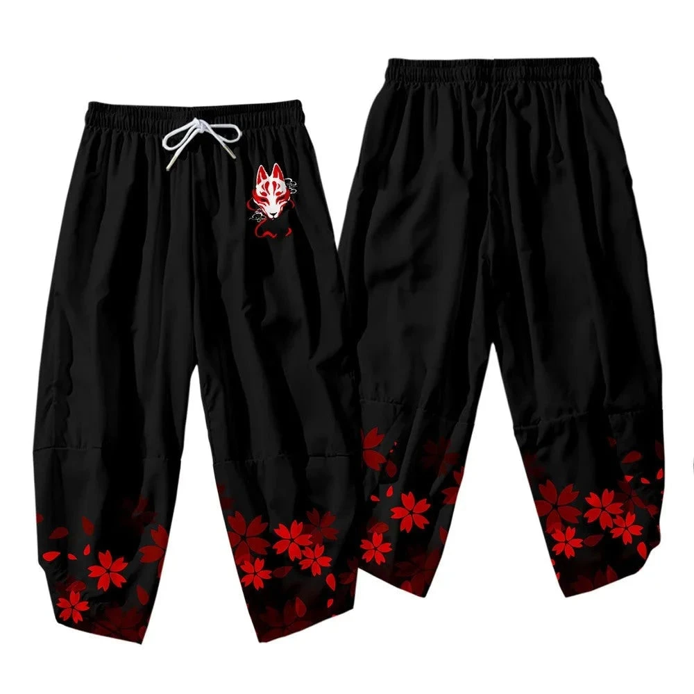 A captivating blend of traditional Japanese elegance and modern style. Elevate your wardrobe with this unique piece that seamlessly fuses the white wolf mask with vibrant Red Sakura petals pants. Match these pants with this kimono top here.