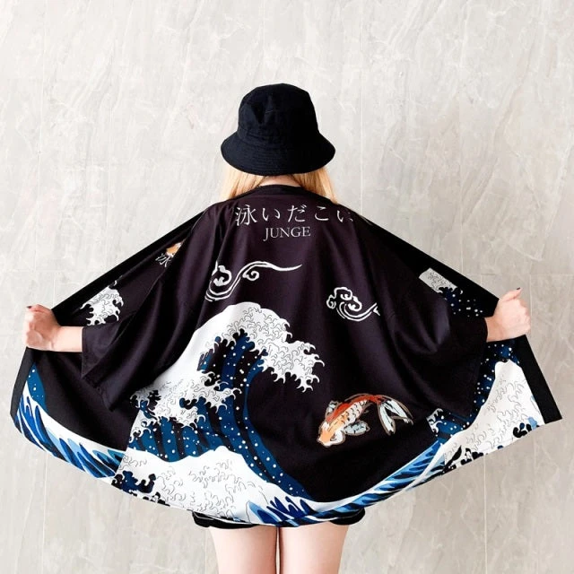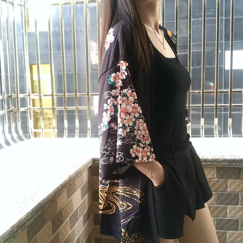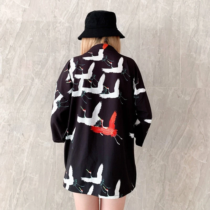 This amazing Japanese Kimono is a must-have for anyone who loves Japanese Art featuring a complex sakura pattern with a lady dressed in a pink kimono. With a classic oversized look, this light, thin kimono will feel silky soft on your skin.