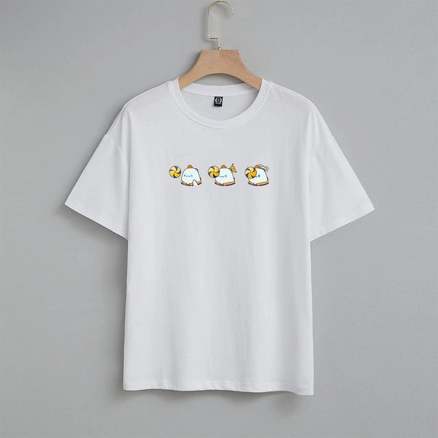 T-shirts are such an easy go-to choice for lazy days, pajamas and outings. Whether you’re about a plain, printed, or striped tee, we’re sure there is room for an adorable Kawaiies x Haikyu Tee. Features Shoyo Hinata in Tato form (Blue Chubby Dinosaur) getting hit by a volleyball. Ouch that must hurt! This is the perfect gift for anyone who loves anime and Haikyu!!