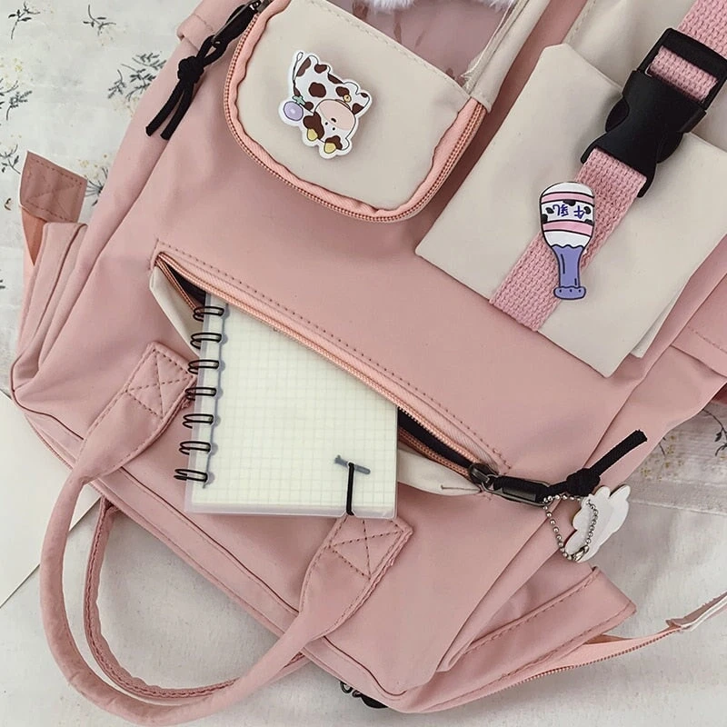Keep your stuff protected with this waterproof backpack that can also be used as a handbag! This bag has several different large compartments, secret pockets, straps, handles, and multiple exterior pockets on the front and sides. The front of the bag also features a cute see-through pocket where you can keep things safe or show off something cute! Now you can keep your keychains safe with you.