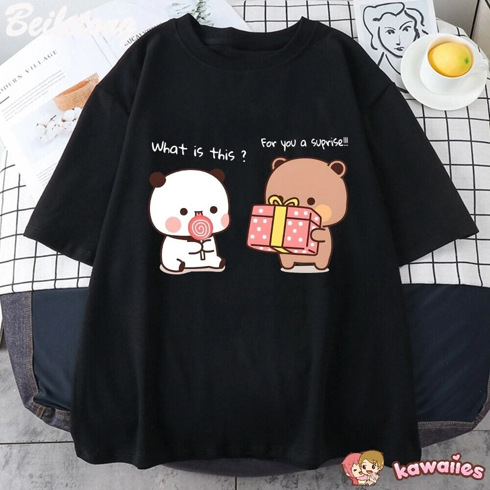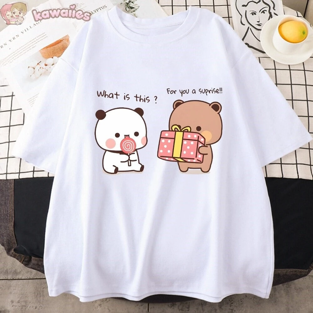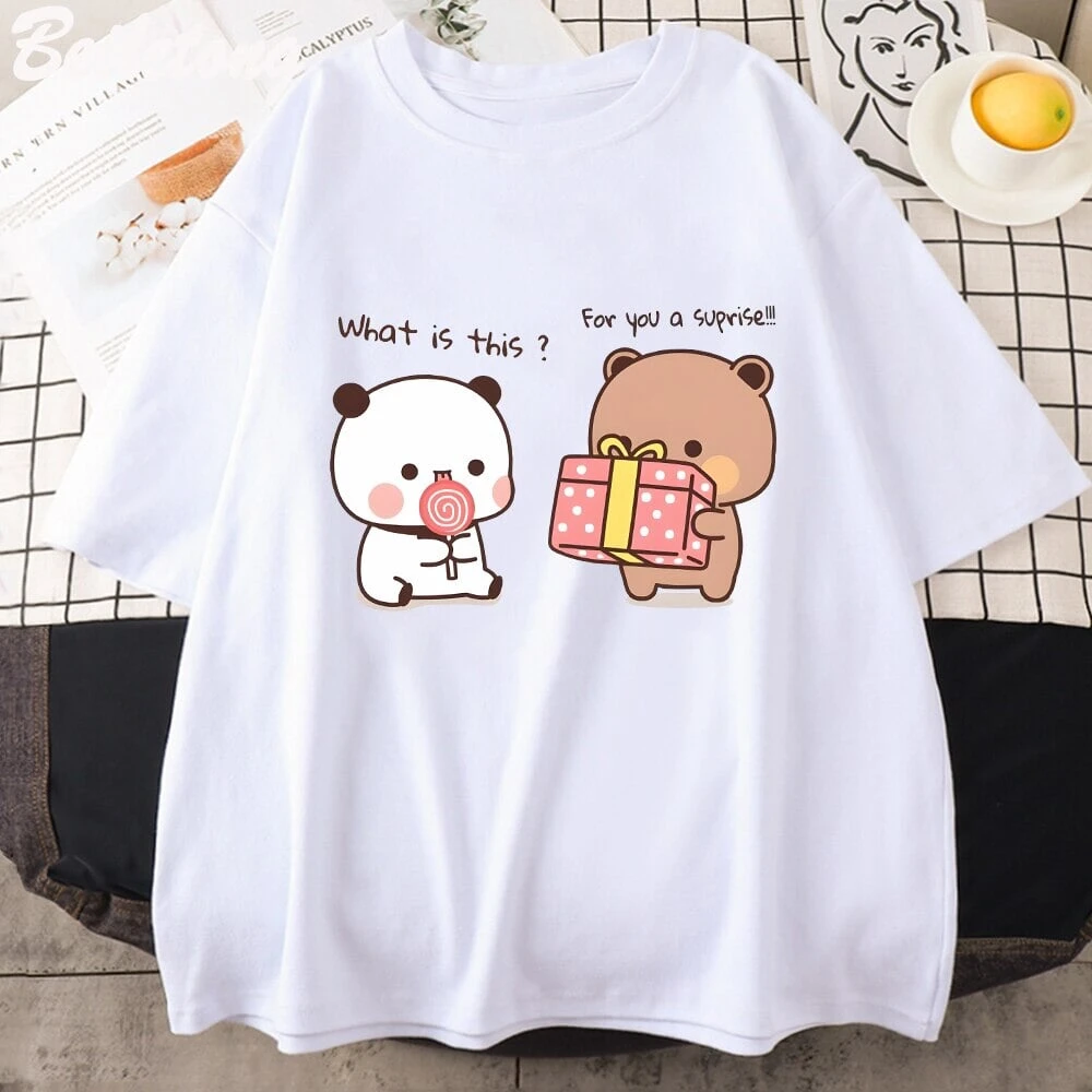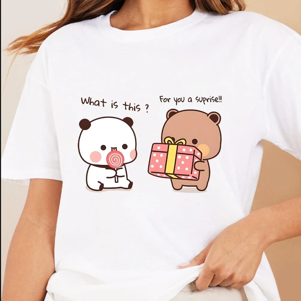Made with soft cotton, this tee will feel gentle against your skin. Whether you’re a bear enthusiast or a fan of pandas – anyone can wear it with absolute delight. Pair it effortlessly with jeans, shorts, or your favorite skirt, and watch as the smiles follow you wherever you go. This tee isn’t just a piece of clothing; it’s a statement of your love for all things cute, and it’s bound to spark conversations and brighten up anyone’s day.