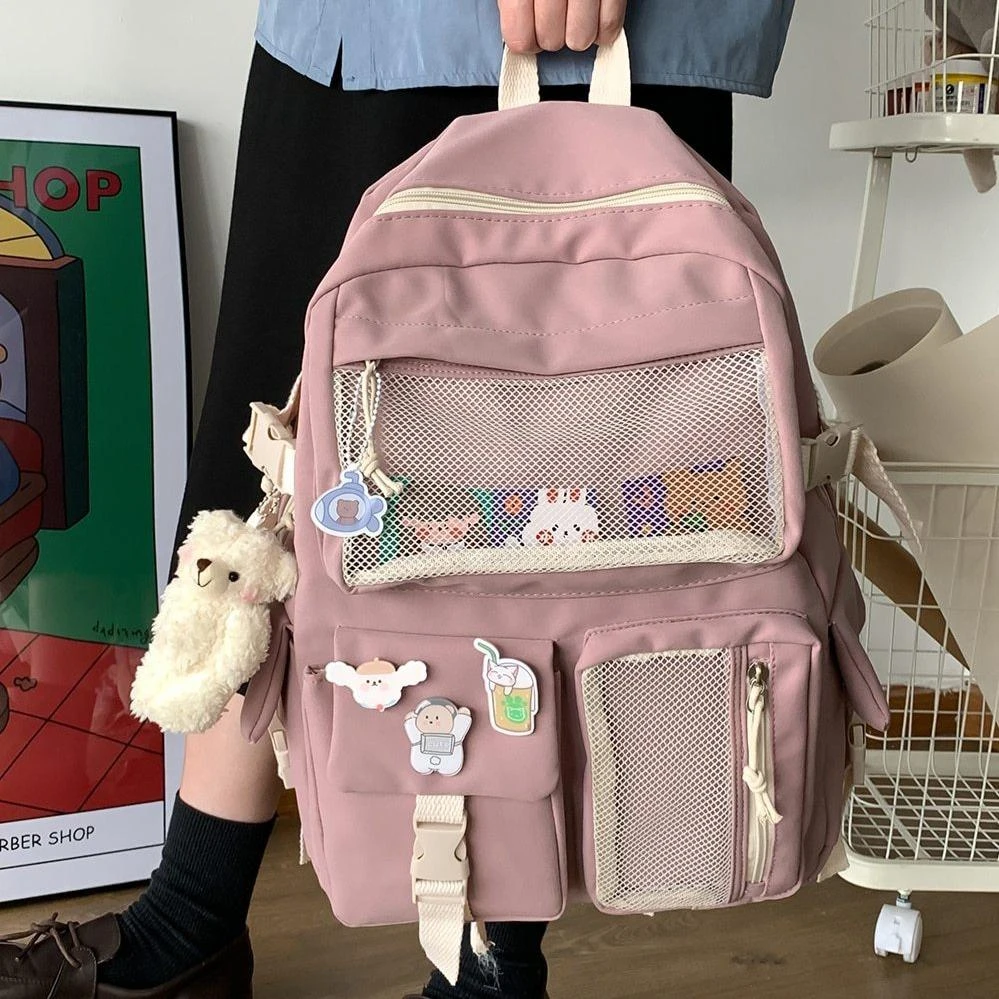 This fun and functional backpack features several different large compartments, pockets inside and five secure exterior pockets. The front of the bag also features a cute see-through pocket where you can keep things safe of show off your decoration skills! Made from high-quality waterproof materials with enough space to fit all of your studying neccessities.