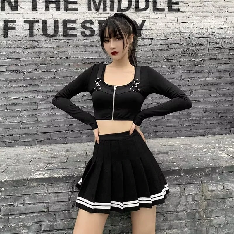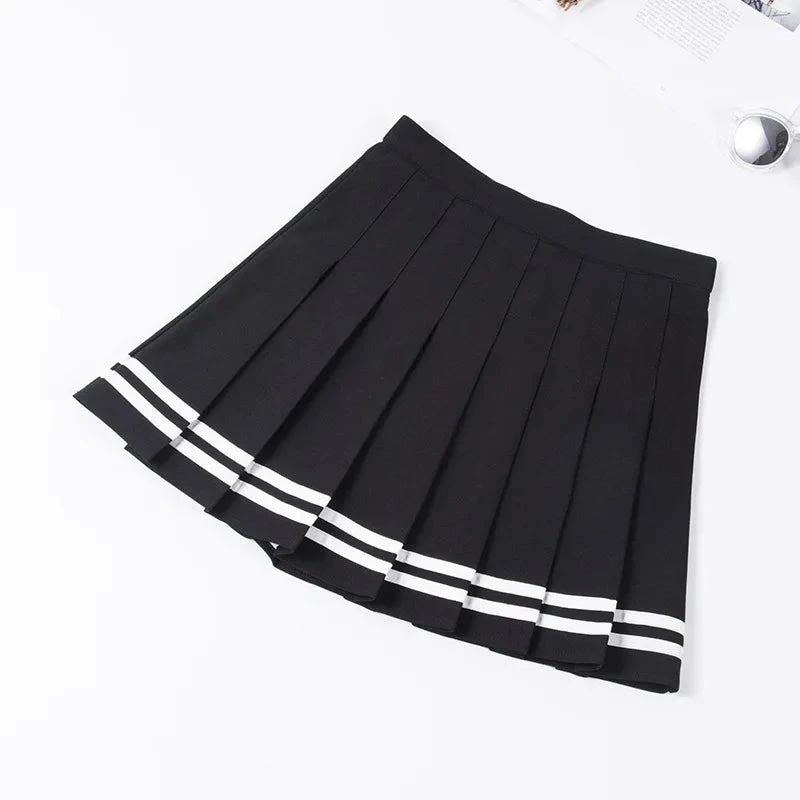 Ready to level up your aesthetic game? The Preppy Pleated Tennis Mini Skirt is your new wardrobe MVP — perfectly blending cute, sporty, and dangerously flirty. With crisp pleats, contrast stripe trim, and a flattering high-waist fit, this skirt will make you feel cute and confident whether you’re serving a look or just grabbing matcha with friends.