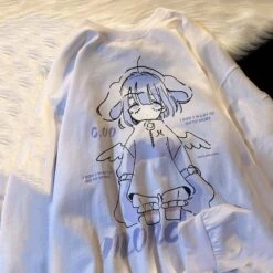 Feel like a cute angel in this kawaii sweatshirt featuring a cute chibi girl in a bunny outfit with wings printed on the front! Made from a blend of polyester and cotton with a loose, lightweight fit. Available in both white and black! A heavenly addition to your wardrobe. The print may look different in person due to screen color differences.