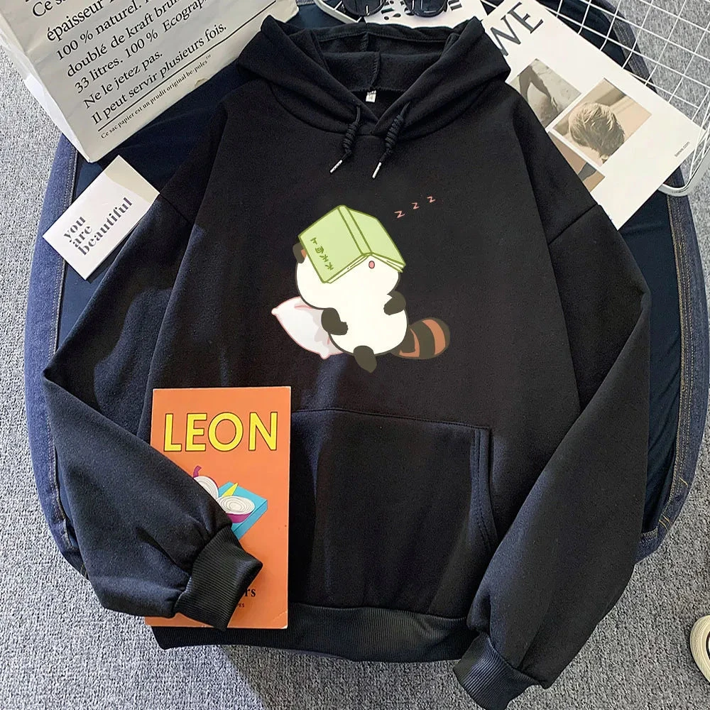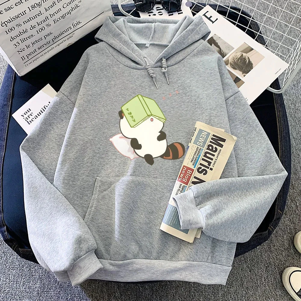 The epitome of comfort meets cuteness! Step out in style and embrace the snug warmth of this charming hoodie, featuring two cute illustrated raccoons hugging each other.