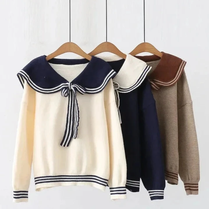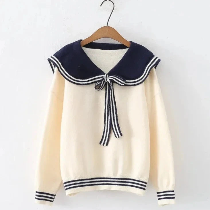 This cardigan is perfect for anyone who wants to feel like they are a schoolgirl princess from Sailor Moon. Upgrade your wardrobe with one of these kawaii cardigans with a striped sailor collar and tie. Perfect for lovers of cute fashion. The classic sailor collar design adds a hint of retro charm, while the long sleeves keep you warm on those windy nights.