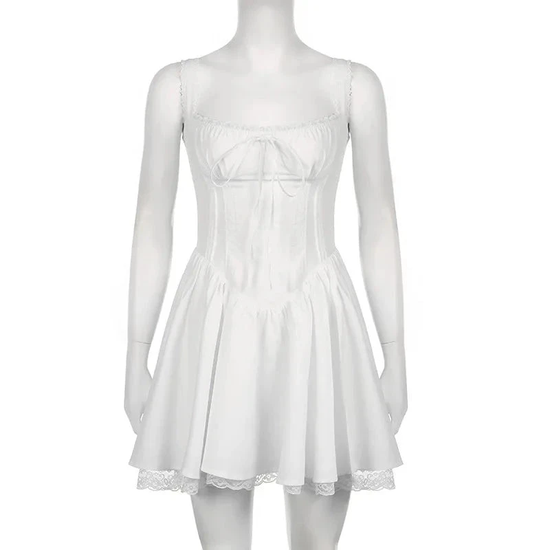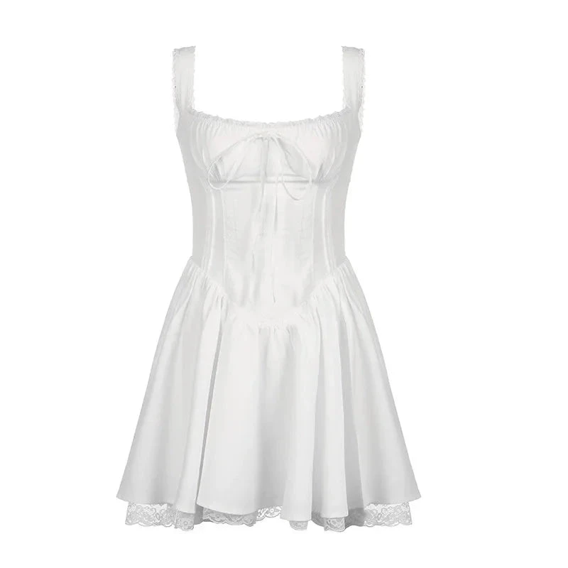 Turn heads at your next event with our Strappy Mini Corset Coquette Party Dress, a stunning fusion of bold style and playful elegance. This dress features a figure-enhancing corset bodice that accentuates your silhouette. The wide strap design allows for versatile wear—transitioning effortlessly from classic to off-shoulder for a more casual, flirty look.