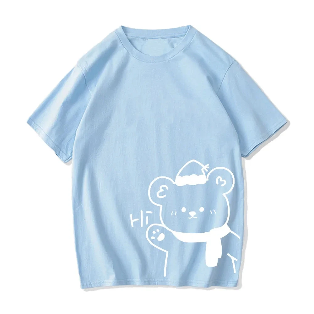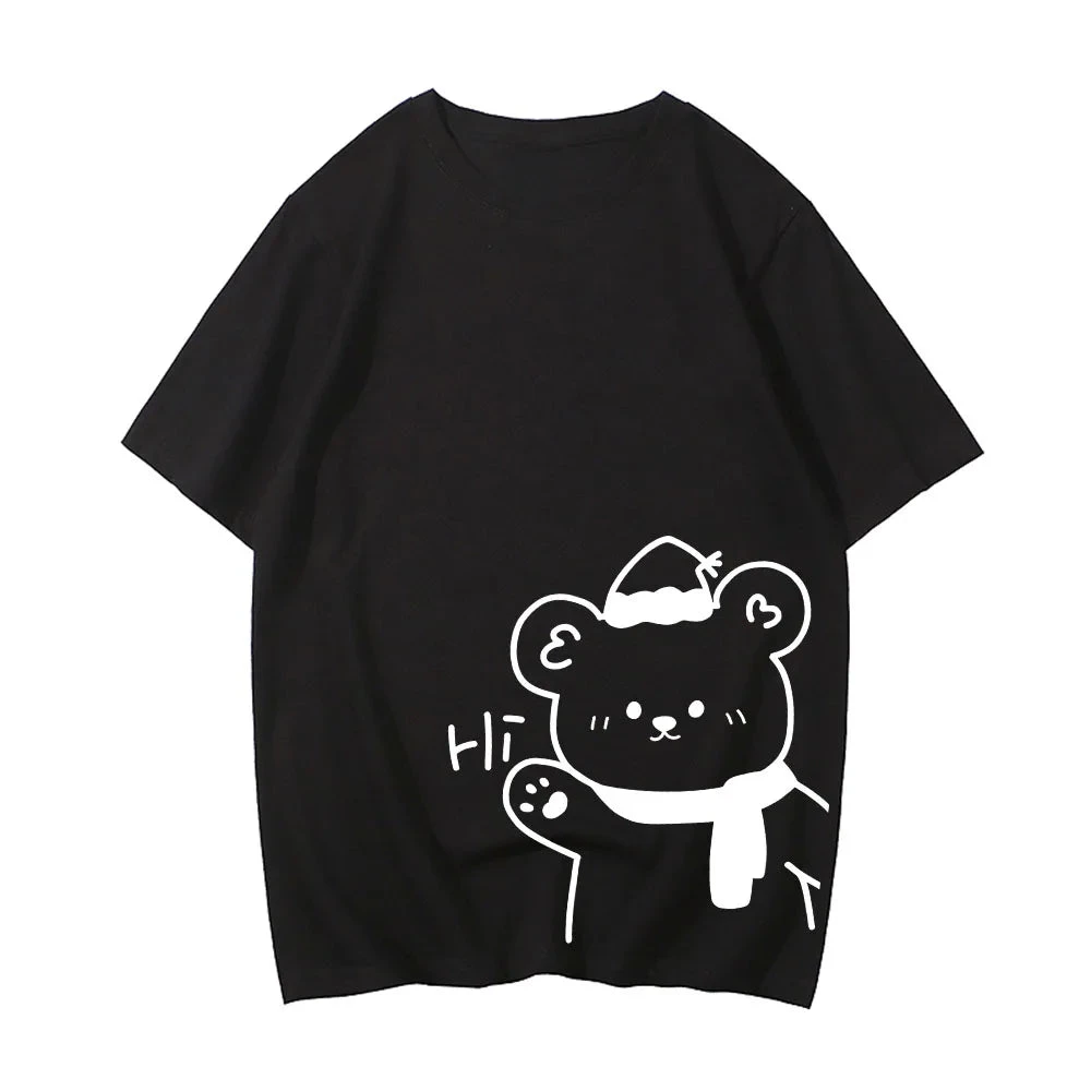 A simple yet cute addition to your wardrobe! Featuring a cute white bear waving on the front making it a must-have for any bear lover. Whether you’re hanging out with friends or just relaxing, this tee promises both comfort and style.