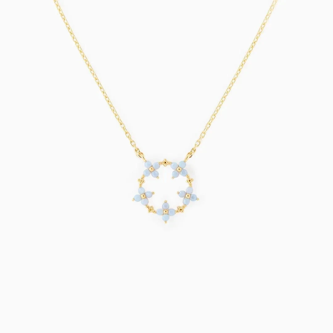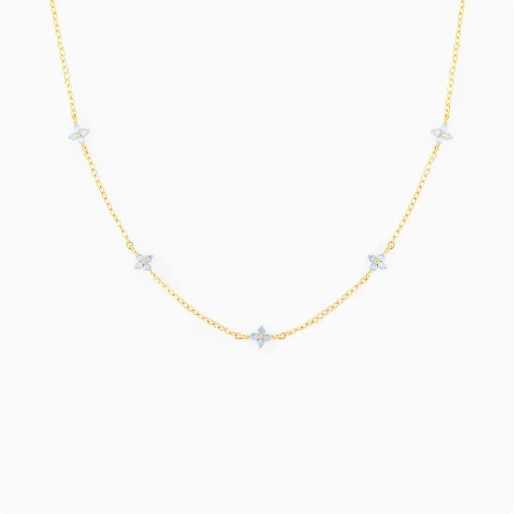 A delicate necklace featuring petite blue flowers crafted from high-quality materials and finished with luxurious 18K gold plating. Choose between two styles or stack them both for a delicate spring look.