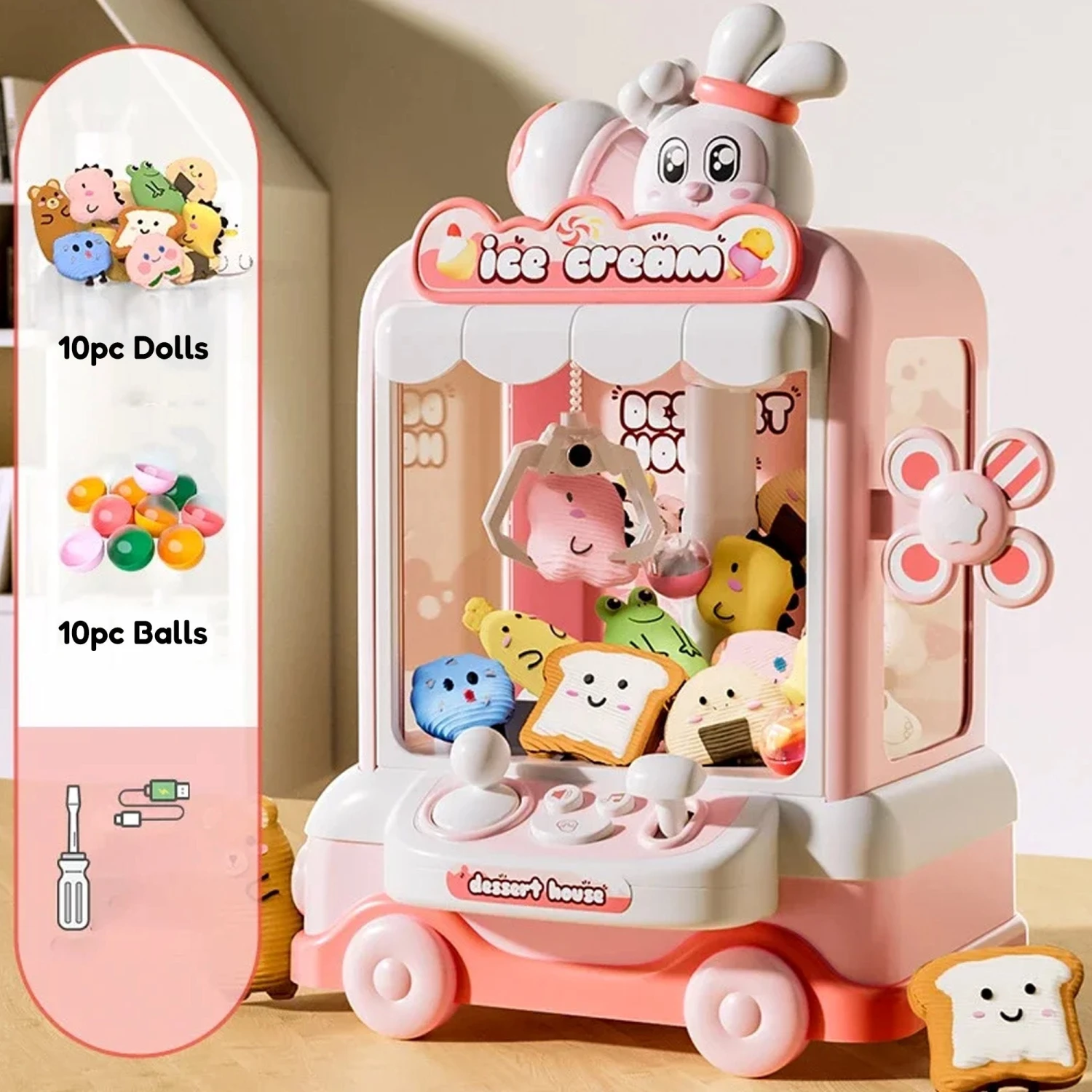 Designed to look like a ice cream cart, this claw machine features durable plastic construction and playful details, adding a pop of fun to any home. With battery or USB power, it’s easy to start playing from anywhere you are.