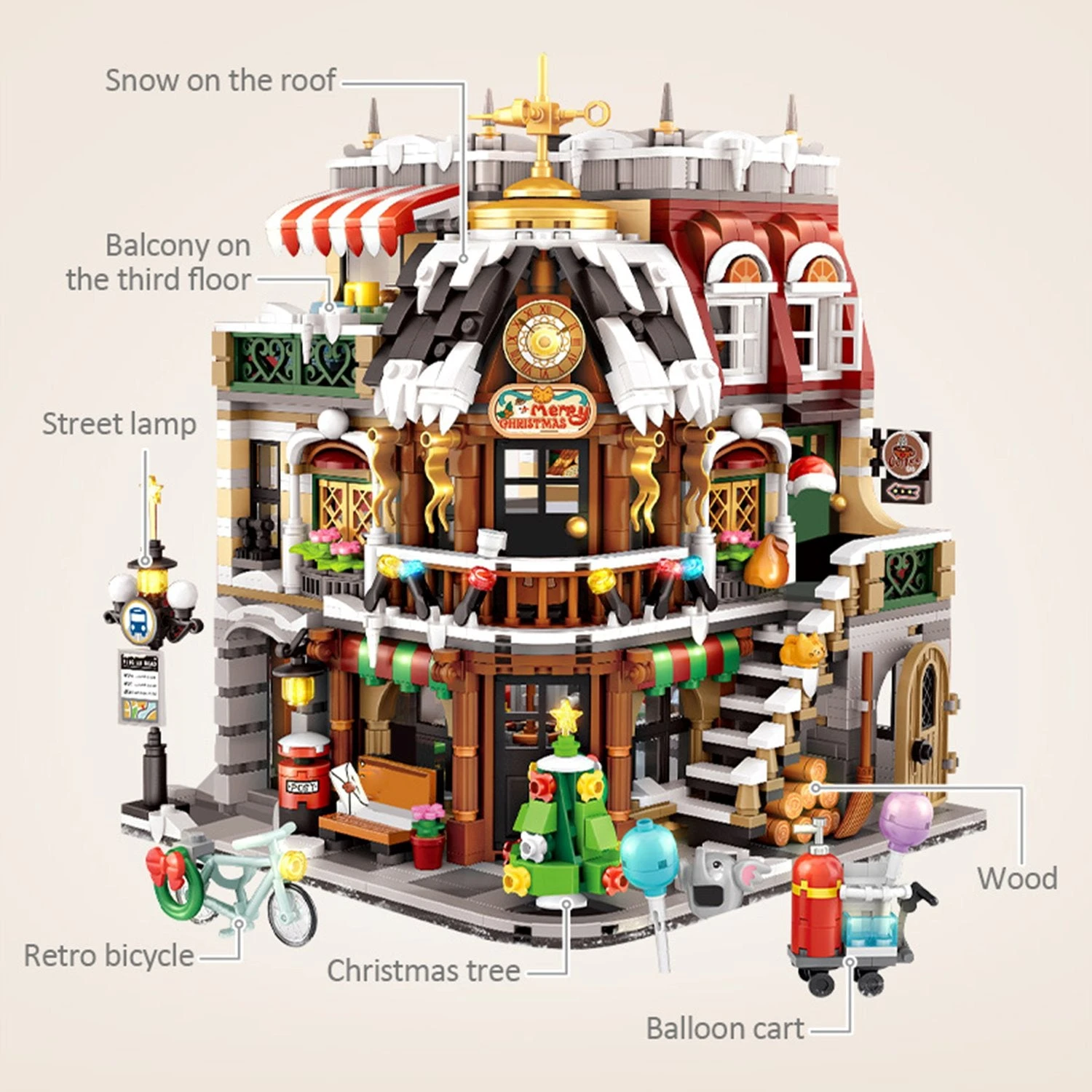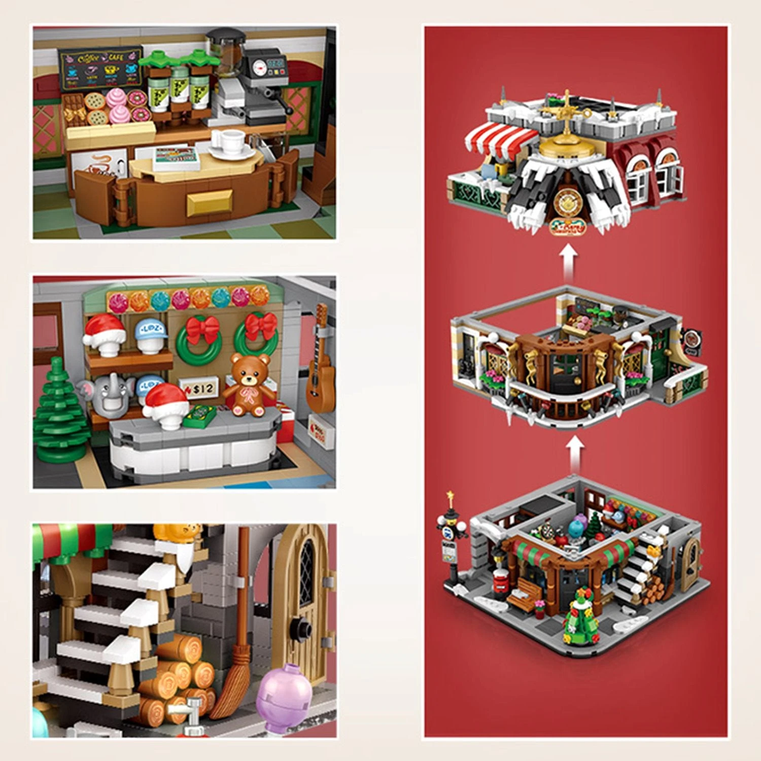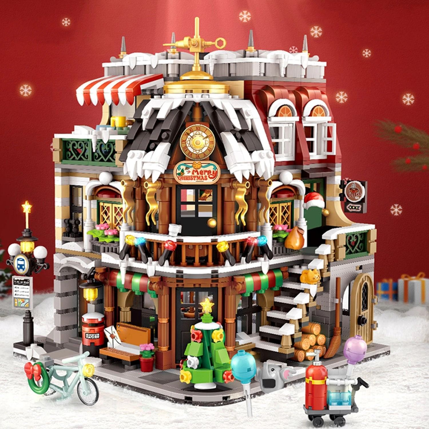 This 2500-piece Christmas Cafe Shop Nano Building Block Set is a fun, challenging, and festive build that brings the holiday cheer to your home this Christmas. It’s ready to be decorated, placed on a shelf or played with. Featuring a Christmas-themed house with immaculate detail, this set includes three floors of fun, cute accessories, a mini Christmas tree and more, so go and explore!
