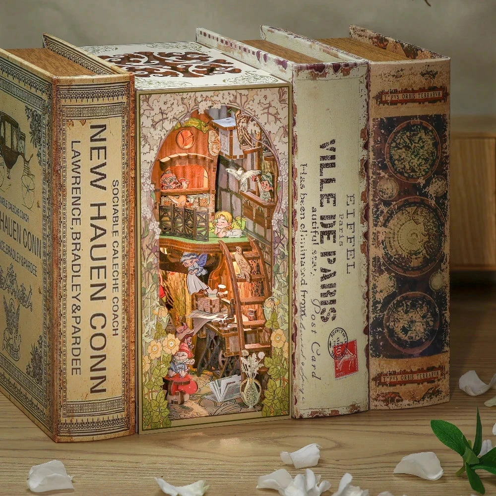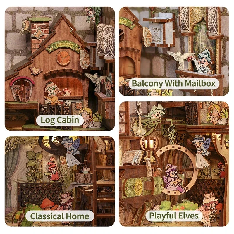 The Elven Paradise Wooden Bookshelf Nook Kit transports you to a mystical world of elves and enchanting forests. This intricate DIY kit features sturdy wooden pieces that are easy to pop out and assemble, allowing you to create a serene elven sanctuary with ancient trees, delicate furniture, and ethereal architecture hidden deep within a magical forest. The kit also includes a soft, glowing light that’s simple to attach and controlled by a touch switch, bringing the scene to life with a warm, otherworldly glow.