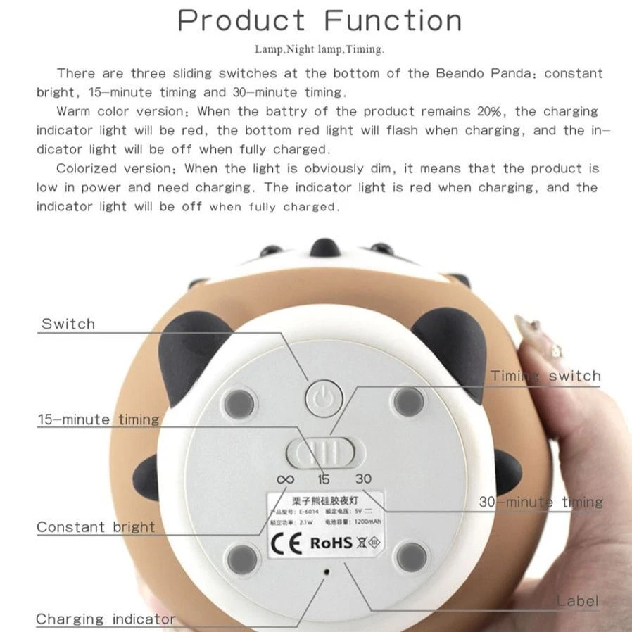 Four styles are available. Chestnut Panda, Baby Bunny, and Green Frog emit 7 possible colours, Leaf Chick emits only warm light. Each sold separately.