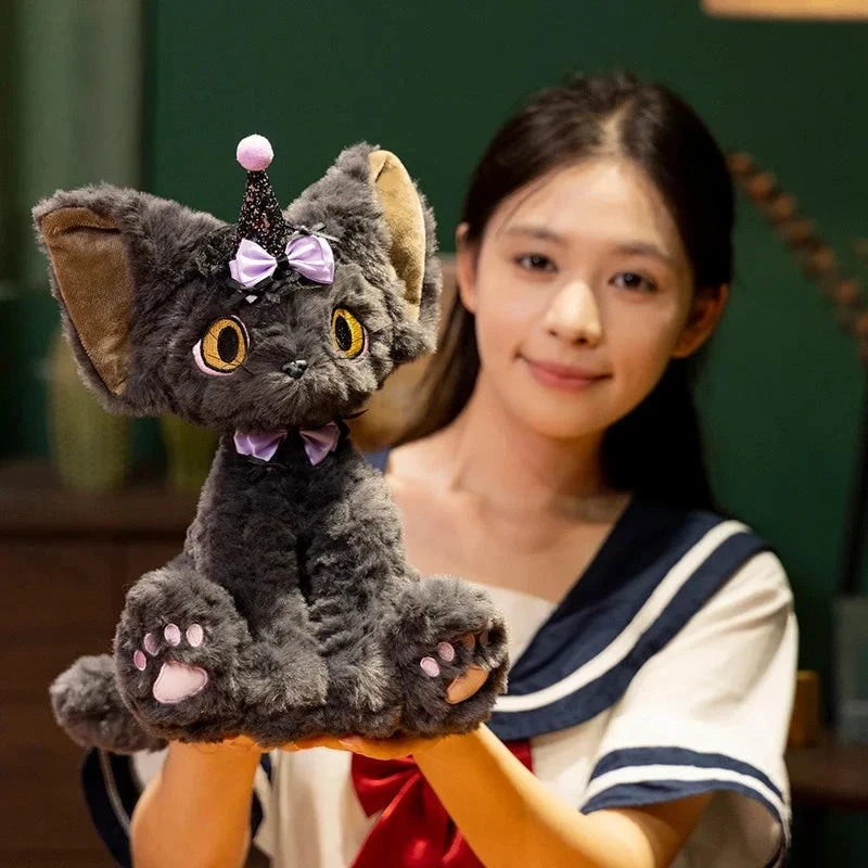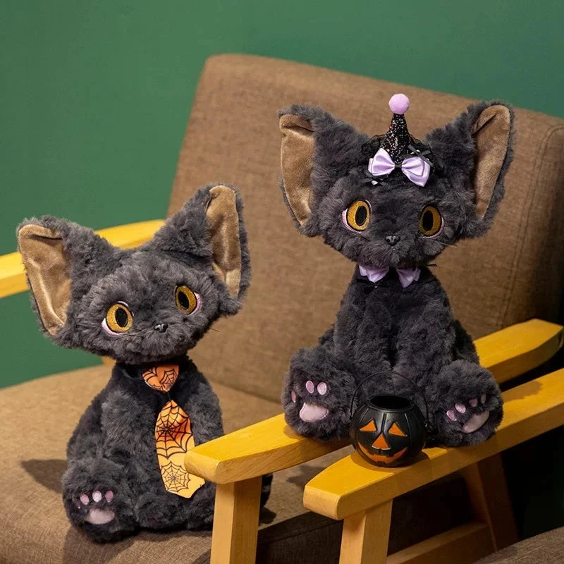 These adorable Halloween-themed cats will leave a lasting impression on any special person receiving this plushie. All it takes is just one hug and you will instantly fall in love with these fluffy witch cats featuring giant ears, fluffy fur, and big yellow eyes wearing a Halloween outfit. The fluffy material and soft PP cotton filling will help ease stress and issues so you can relax.