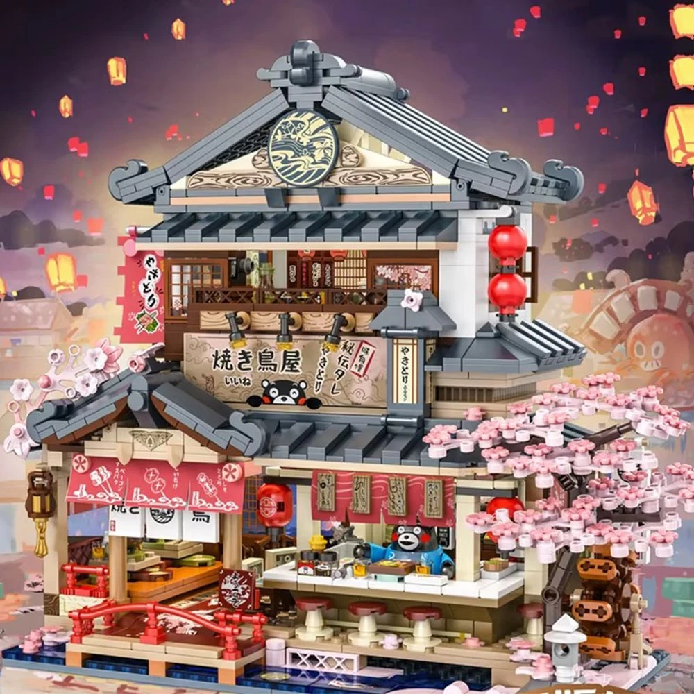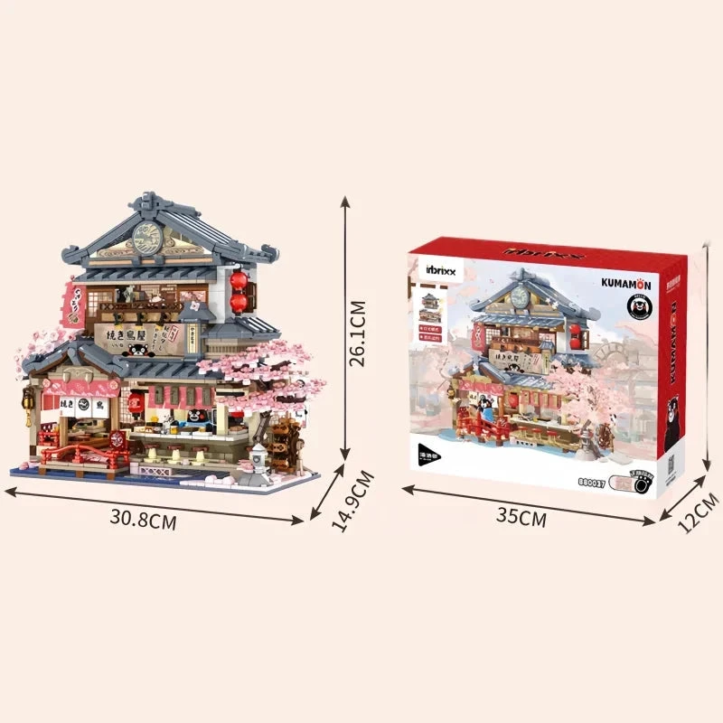 Step into a cozy world of cherry blossoms, glowing lanterns, and delicious street food with this Kumamoto Bear Micro Building Set. Inspired by the charm of traditional Japanese culture, this two-story scene features intricate signage, detailed dining spaces, and the adorable Kumamoto Bear welcoming guests with open paws.