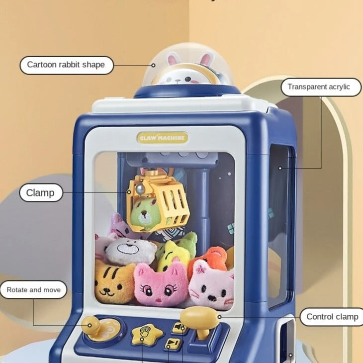 Well, now you can claw toys all day long at home without having to go to the arcade and pay for every turn. Your family and friends will love to have a go at winning a small plushie or toy. This machine is battery and/or USB powered, press the star to start your turn, you have 60 seconds to pick up a plushie with the two handles controlling the clamp.