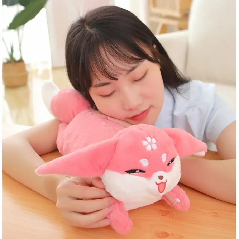 This cuddly pink fox plushie will provide warmth all night while keeping you company with its super soft plush material. Featuring a cute cheerful face, huge ears, a fluffy tail, and a sakura icon embroidered on its face.