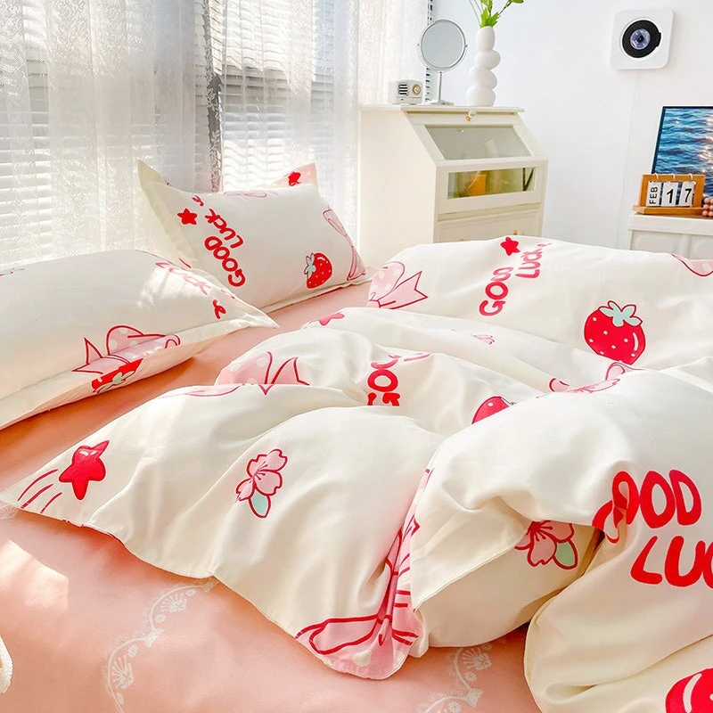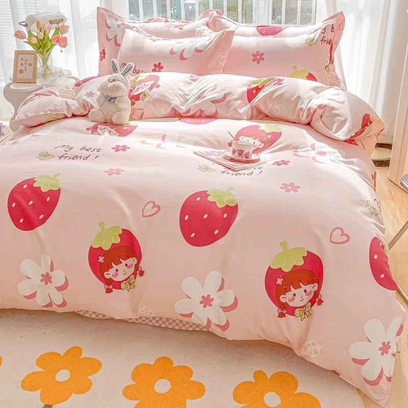 🍓 Includes a duvet cover, a bed flat sheet, and pillowcase(s).