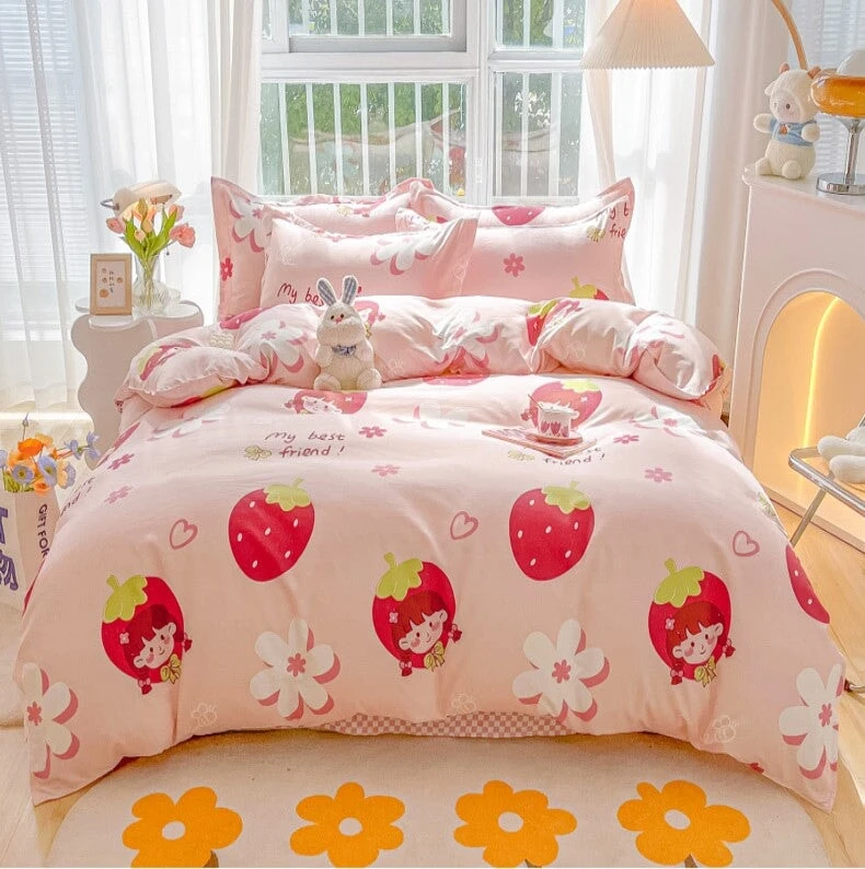 Snuggle up under this Kawaii Strawberry bedding set for your sweetest dreams ever!