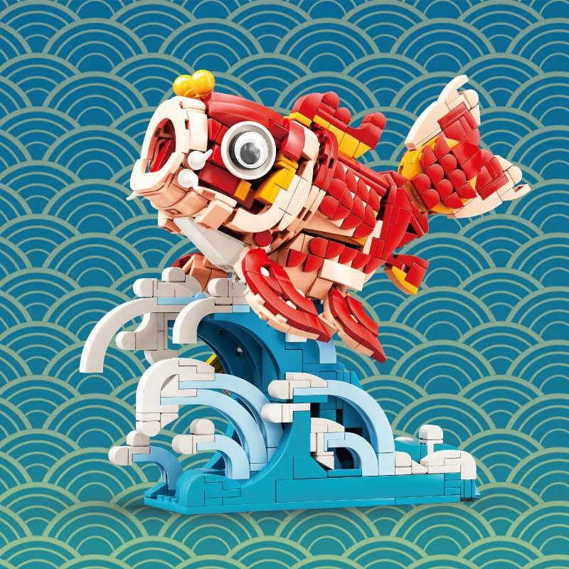 Dive into a world of creativity as you bring this tiny masterpiece to life. Build a vibrant Lucky Red Fish jumping out of thrashing waves, and a whole bunch of intricately designed blocks that screams awesome and fun.