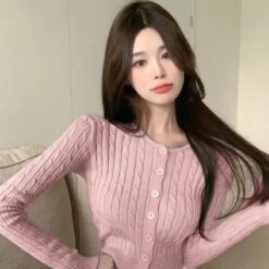 Apparel Pastel Knitted Women’s Buttoned Long Sleeve Cardigan