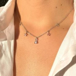 Kawaii Starry Bear Pink 18K Gold-Plated Station Necklace